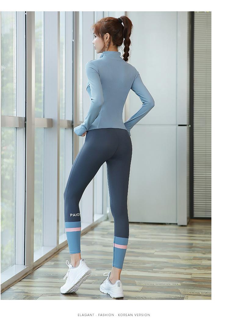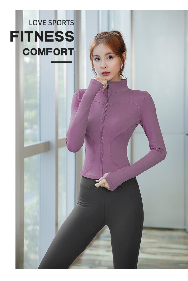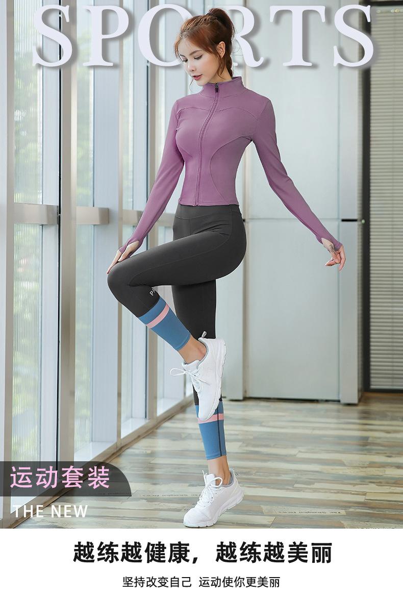 Ropa de yoga chaqueta de fitness de manga larga blusa de cuello alto pantalones de yoga melocotón cadera desnudo cintura alta traje deportivo para correr para mujer