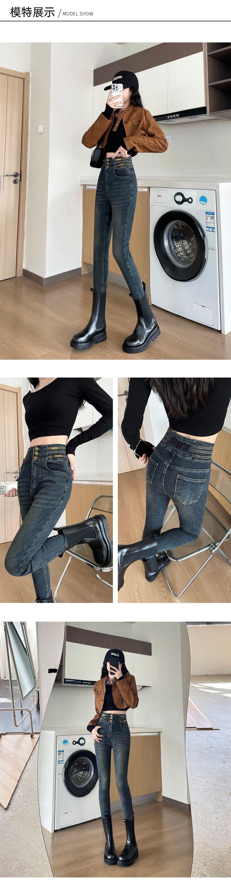Jeans de cintura alta para mujer, primavera y otoño 2024, nuevos y populares pantalones pitillo ajustados y adelgazantes de tiro alto.
