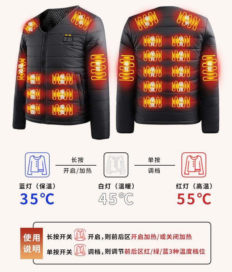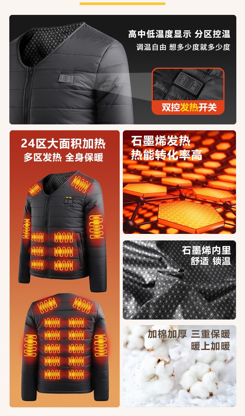 Suministro directo de fábrica, ropa de algodón acolchada con calefacción inteligente, ropa de algodón acolchada con calefacción eléctrica de temperatura constante, ropa de invierno con cuello en V, calefacción delantera y trasera, ropa de abrigo de manga larga