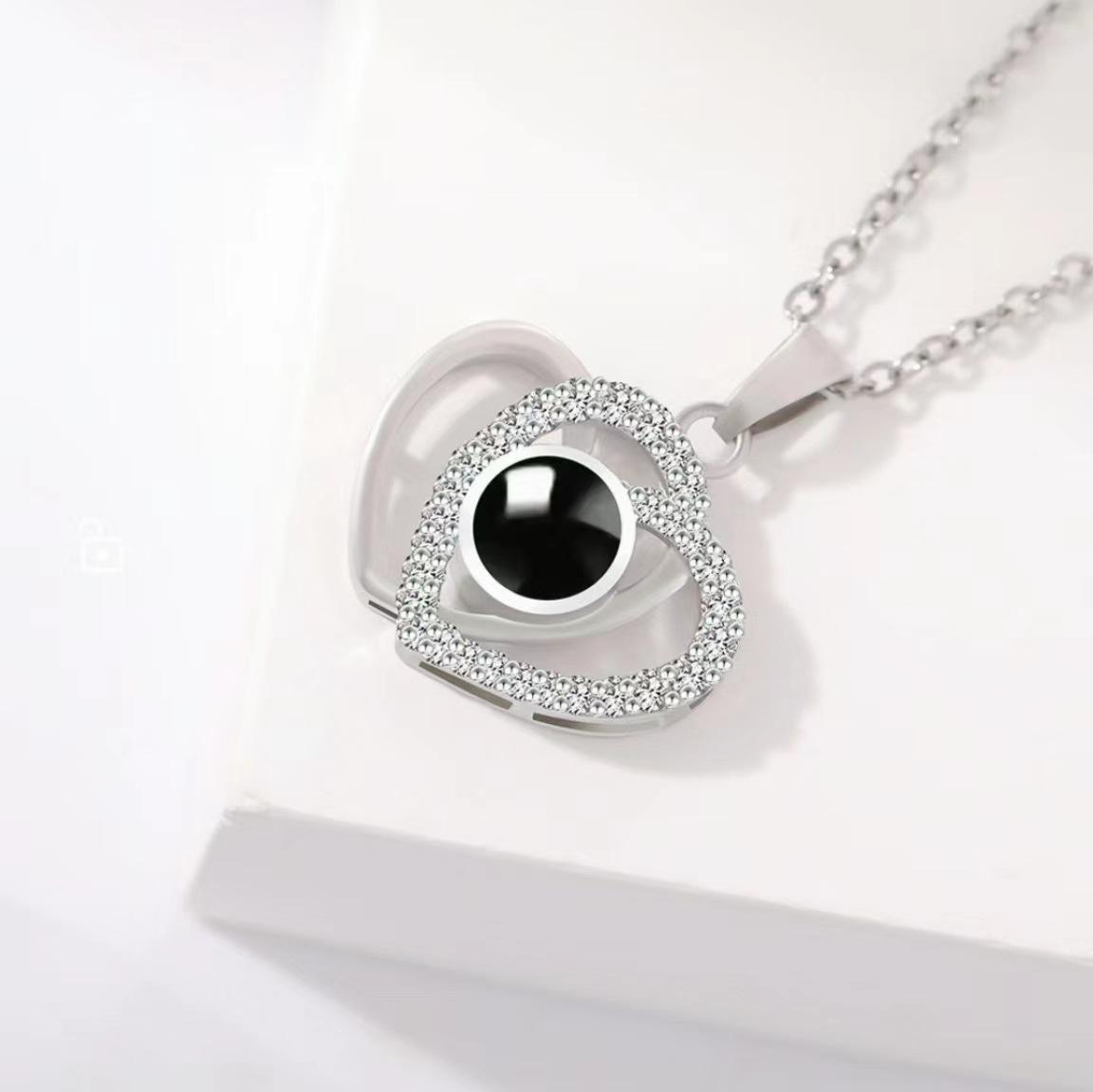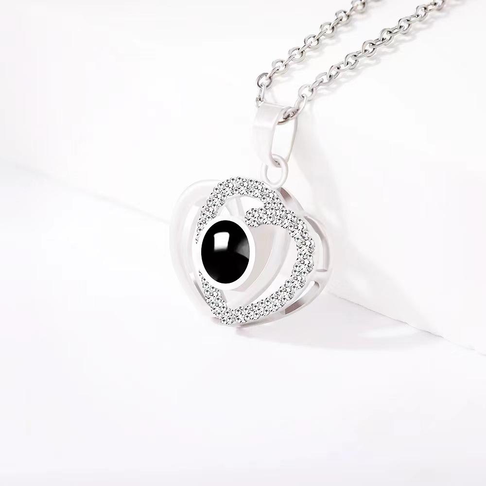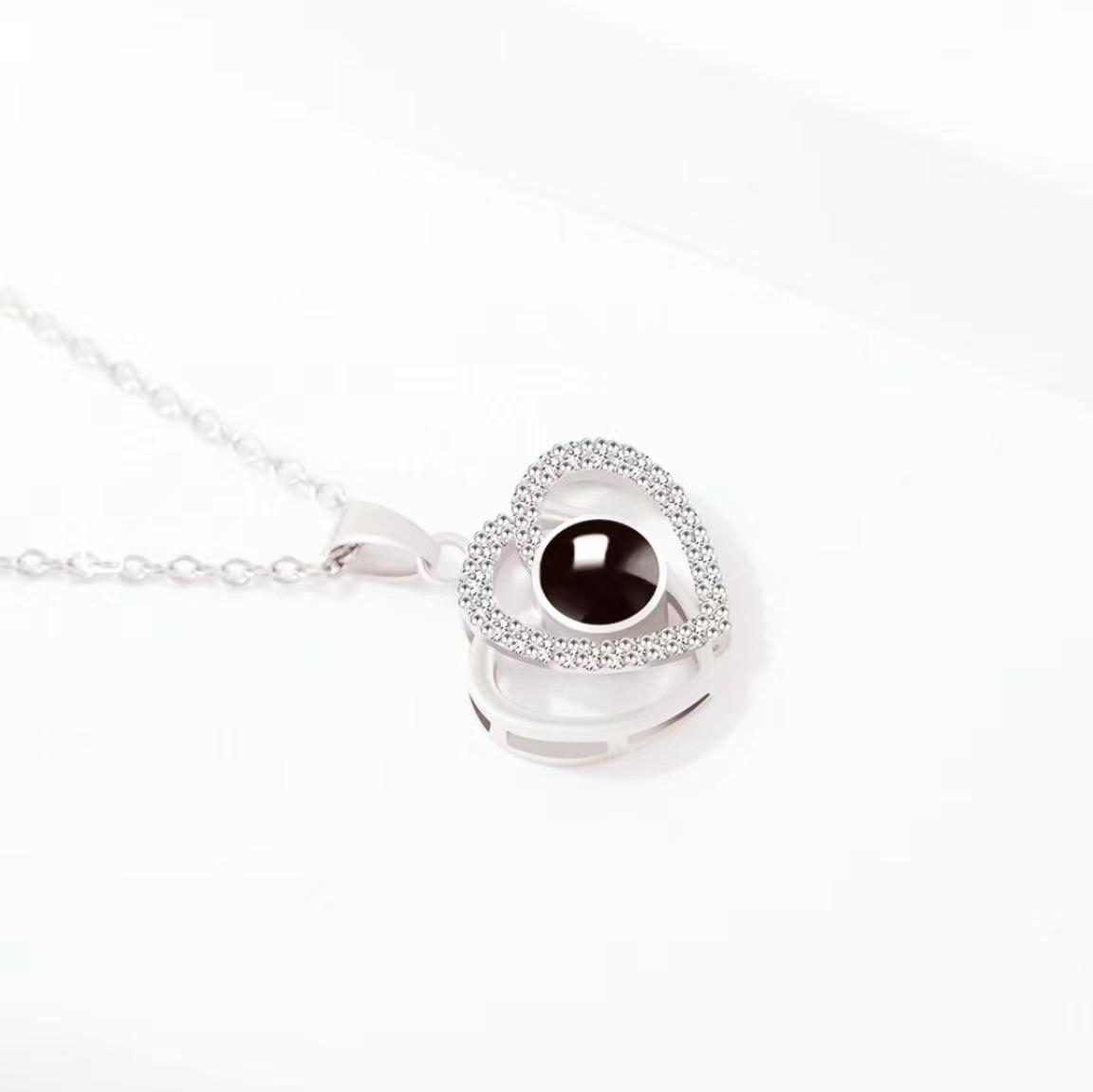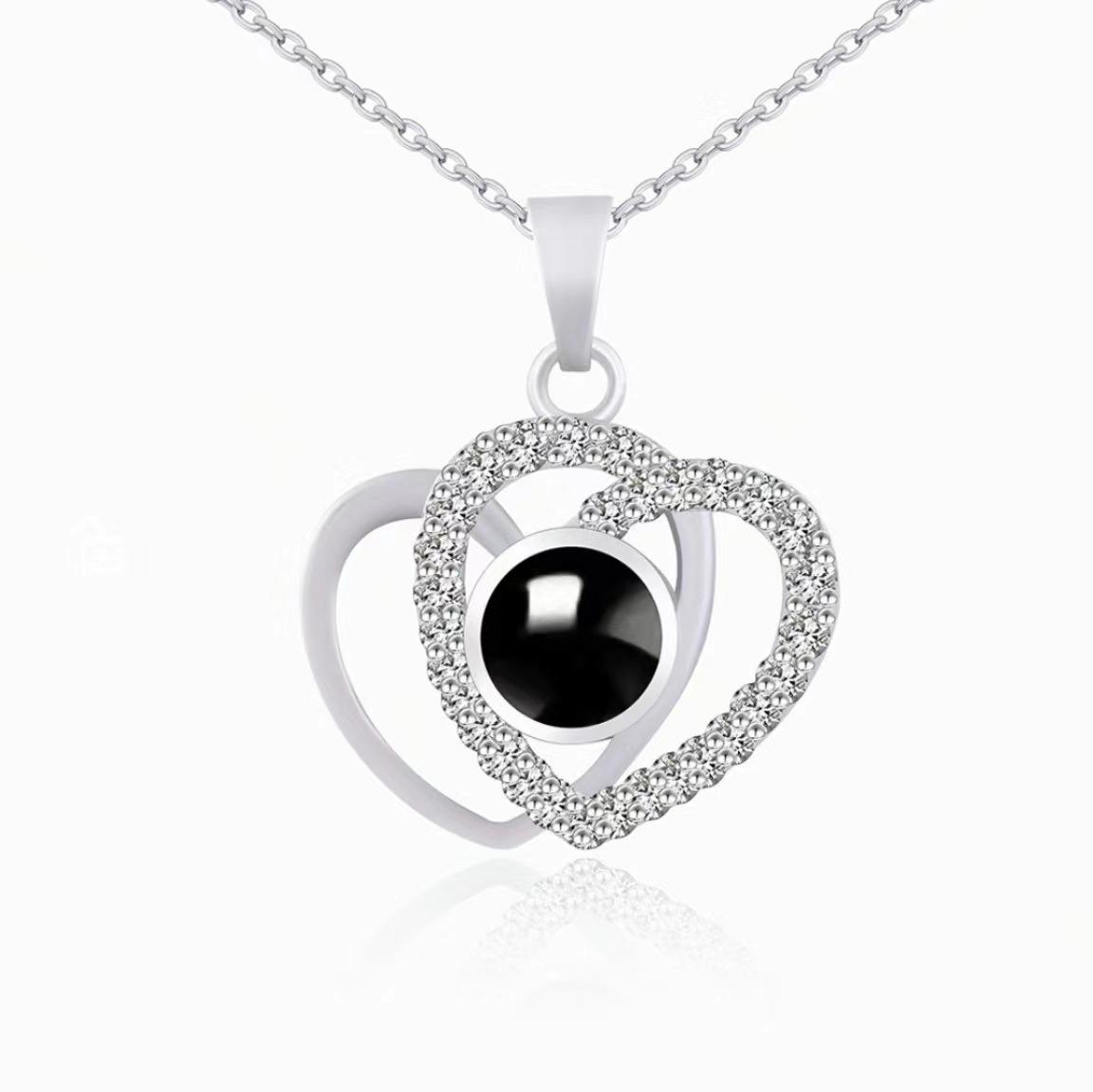 Collar de doble corazón bañado en cobre con "Te amo" en 100 idiomas, superventas transfronterizo, con un dulce y fresco conjunto de imágenes de cadena de clavícula.