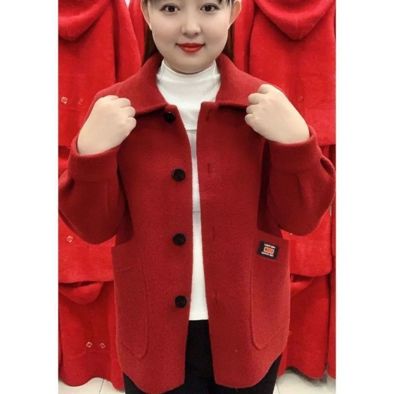 Abrigo grueso con forro polar nuevo de moda roja de primavera y otoño, abrigo corto de estilo coreano para mujer, abrigo elegante versátil que reduce la edad, moda femenina