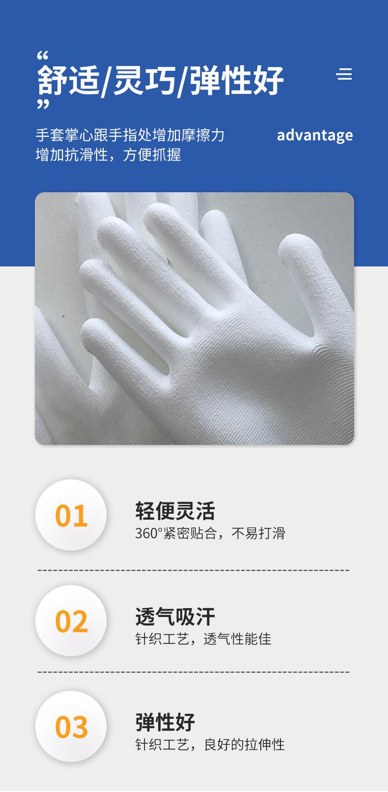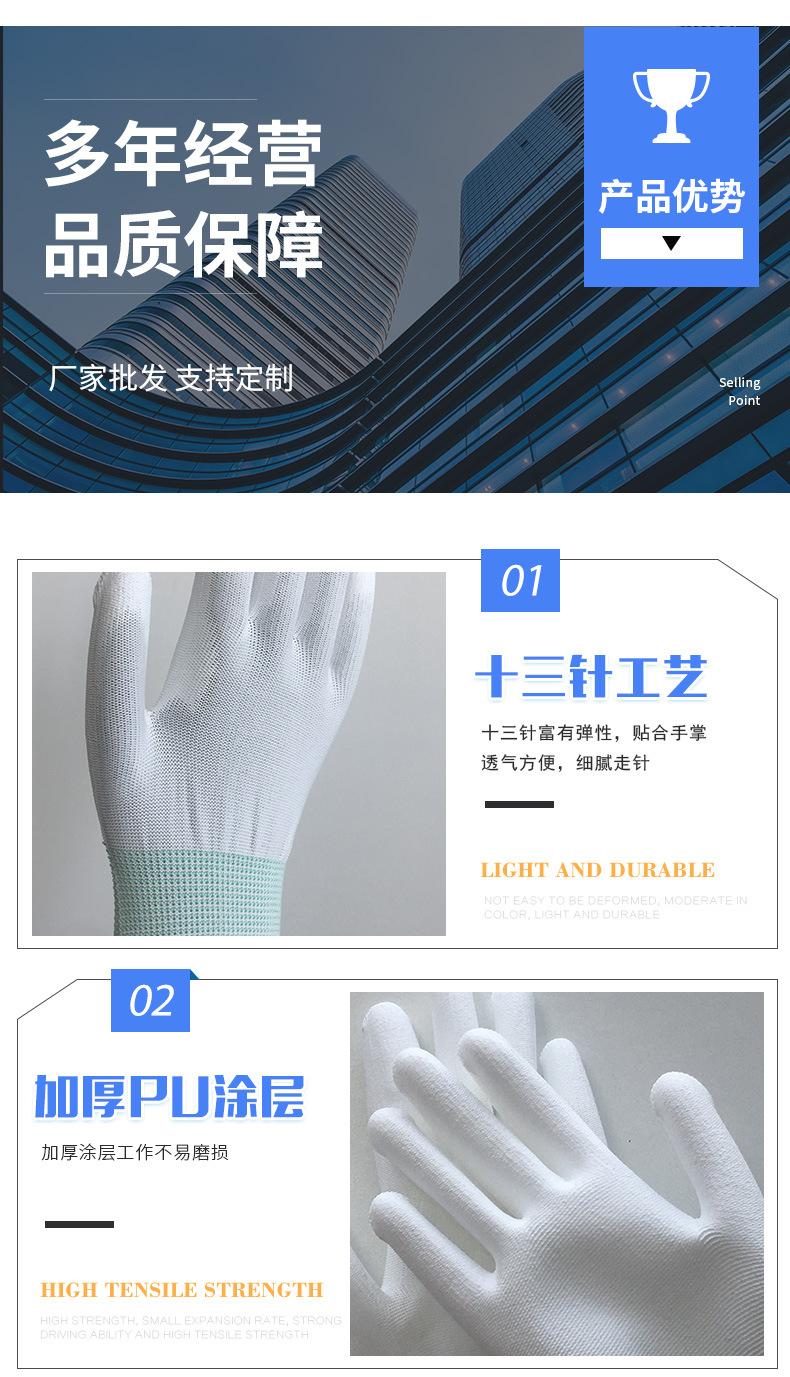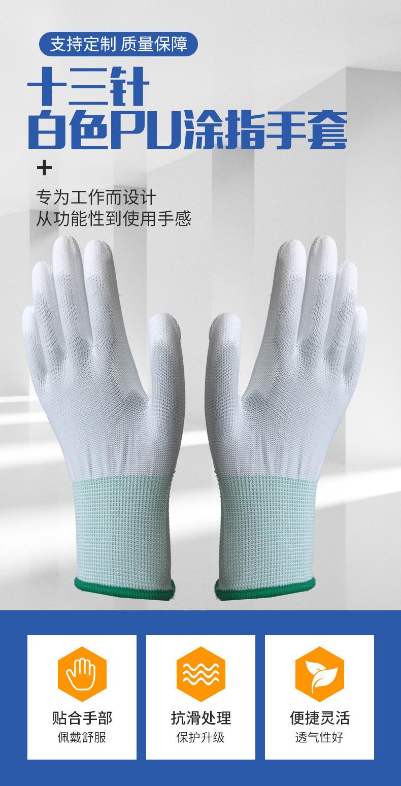 Guantes de 13 agujas de nailon tejido con recubrimiento de PU blanco, cómodos, antideslizantes, para jardinería, trabajo, protección laboral