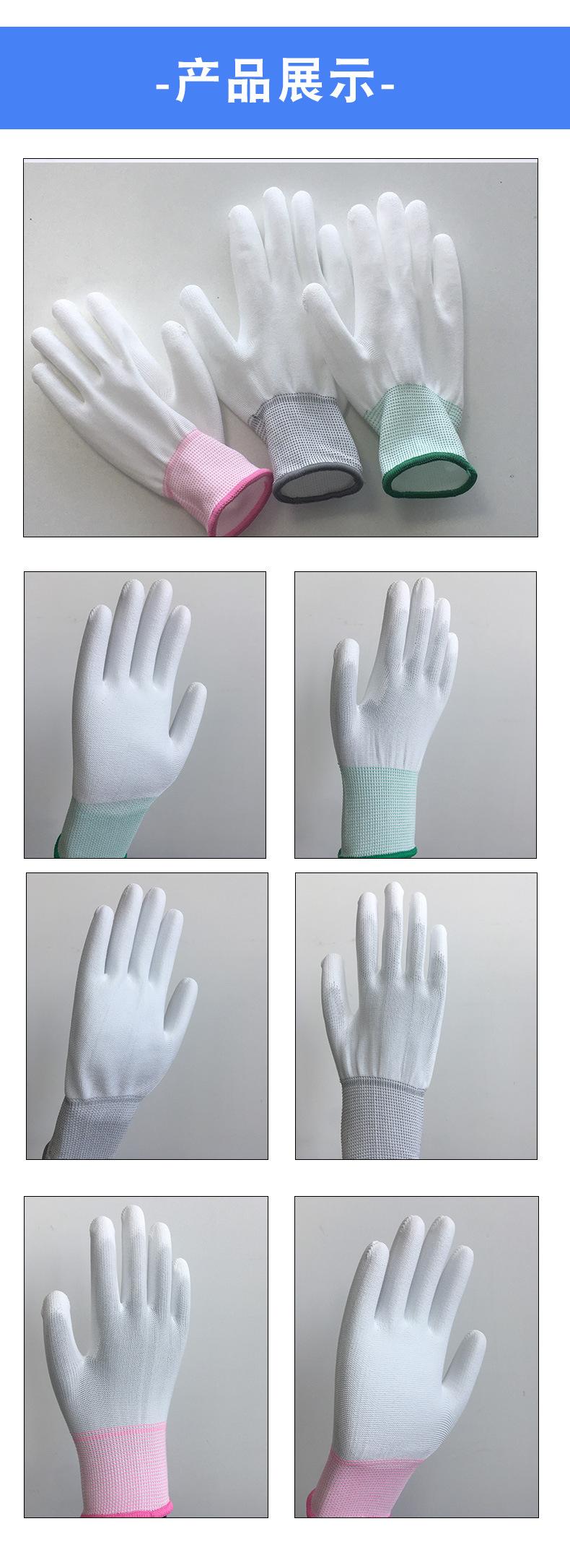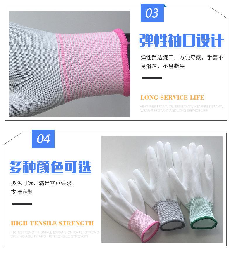 White PU coated palm gloves pink edge, White PU Palm-coated gloves with green edge, White PU coated palm glove...