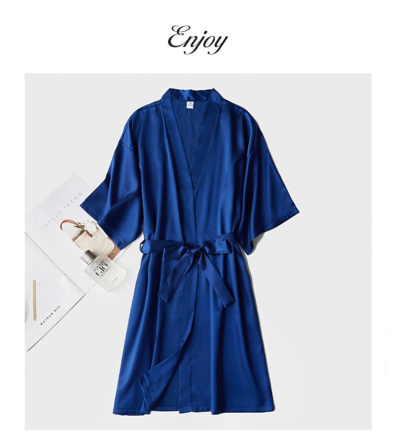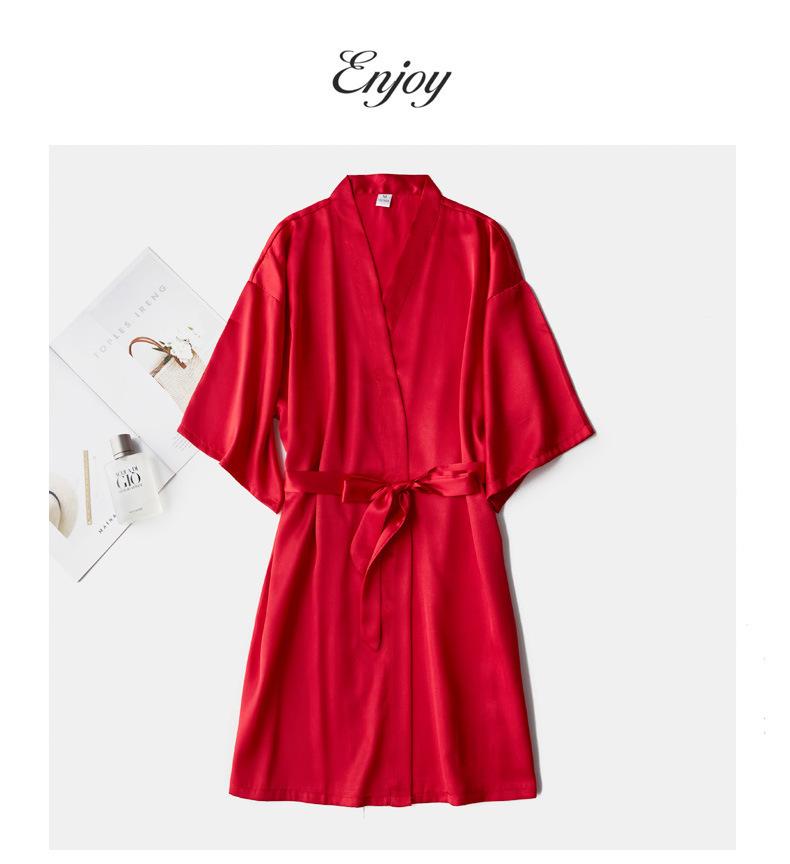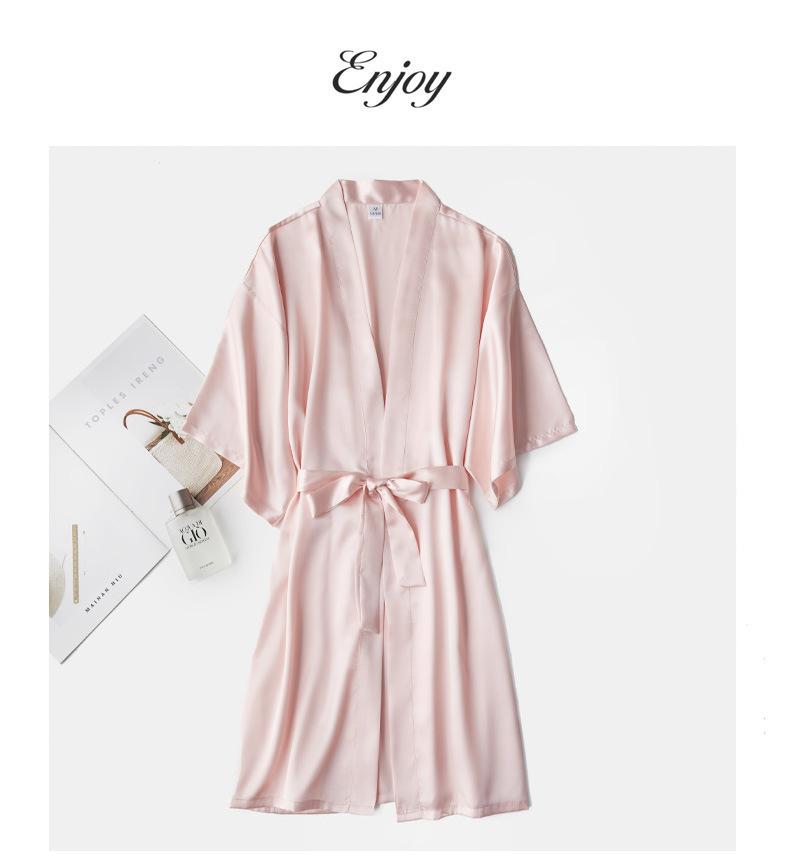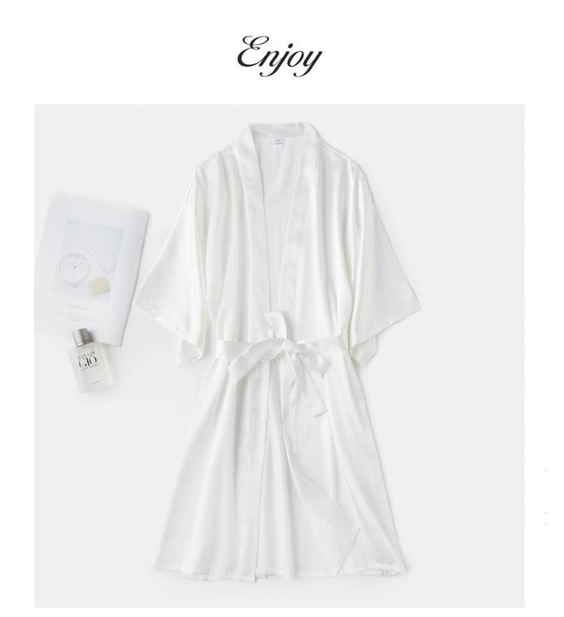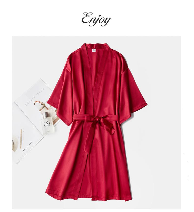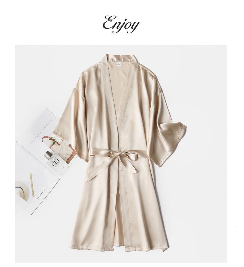 Camisón de seda de media manga para mujer, vestido de novia, cárdigan fino, vestido de novia, vestido de novia, color liso, sin palabras