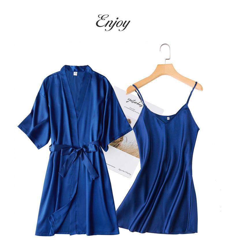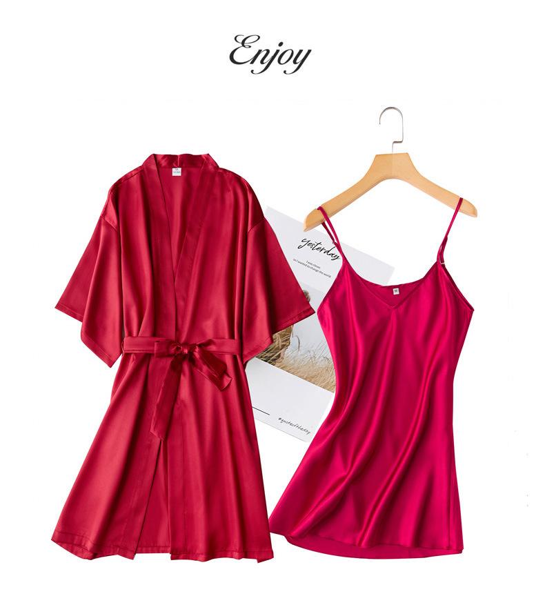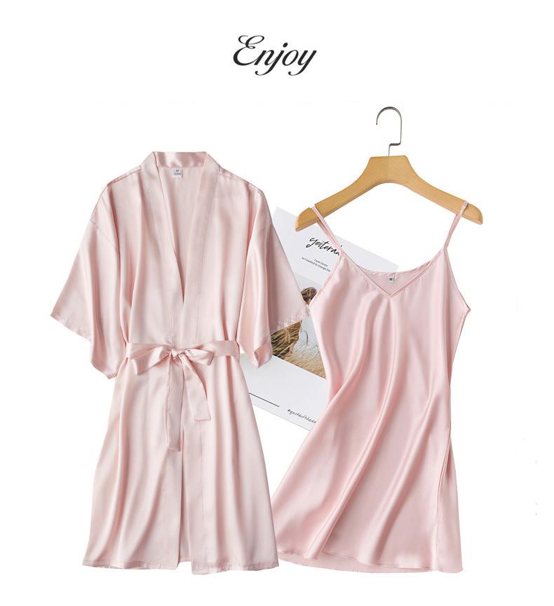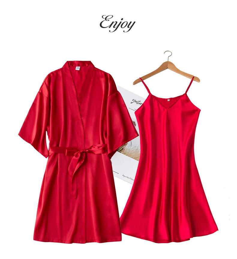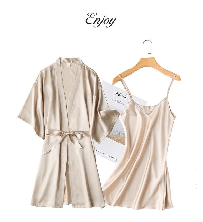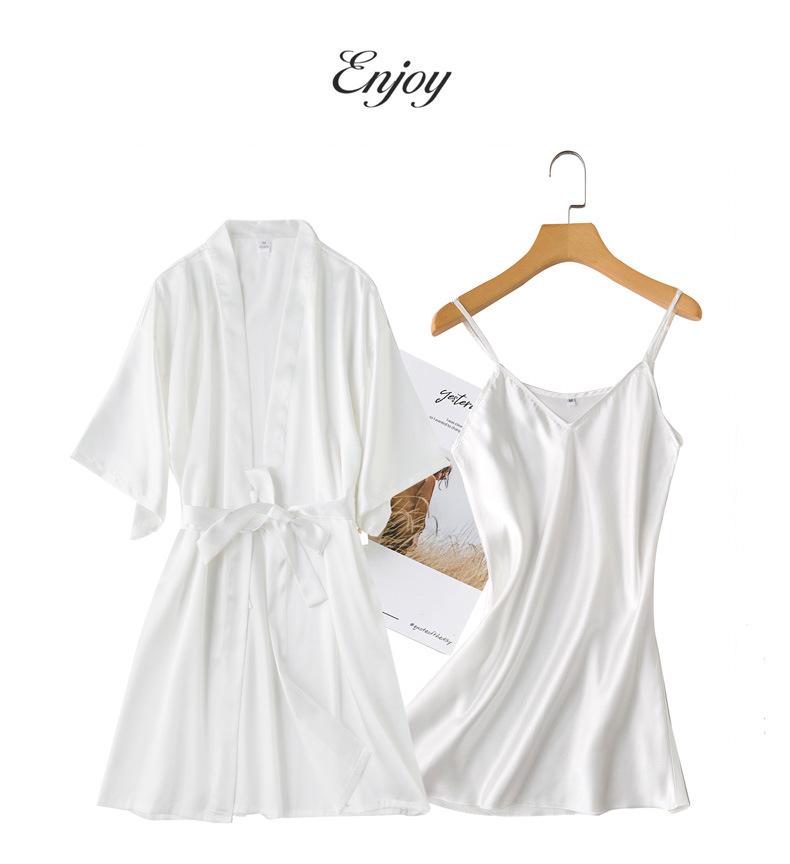 Camisón de seda de media manga para mujer, vestido de novia, cárdigan fino, vestido de novia, vestido de novia, color liso, sin palabras
