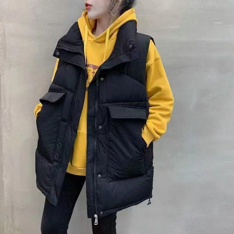 Chaleco de algodón de plumón de longitud media para mujer 2023, suelto, de talla grande, otoño e invierno, nuevo chaleco grueso para mujer