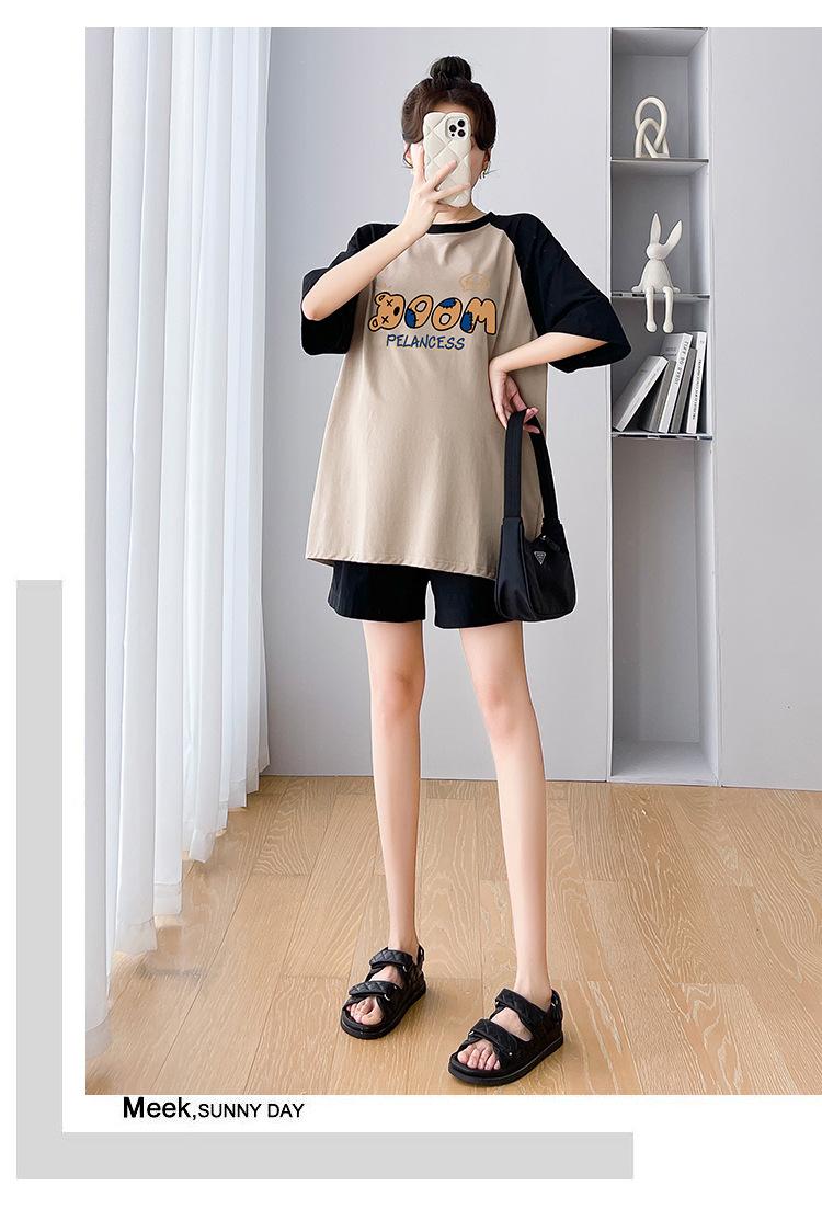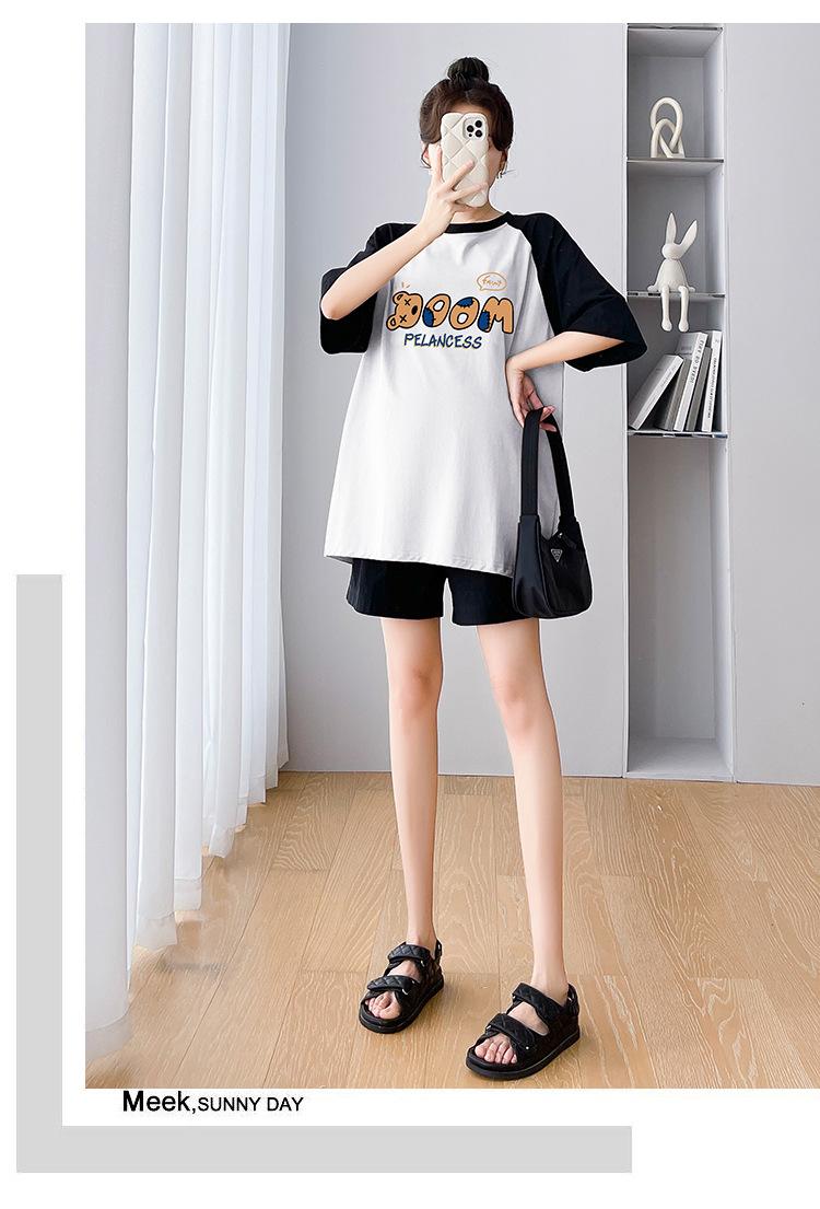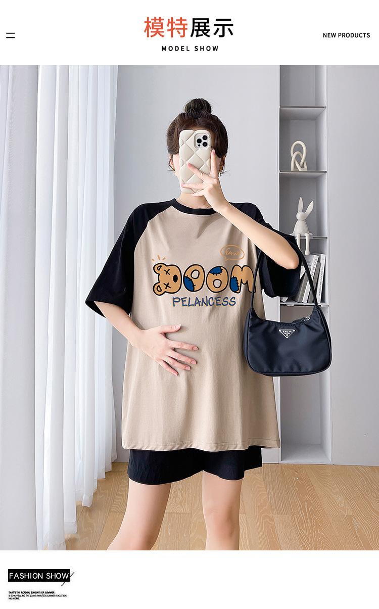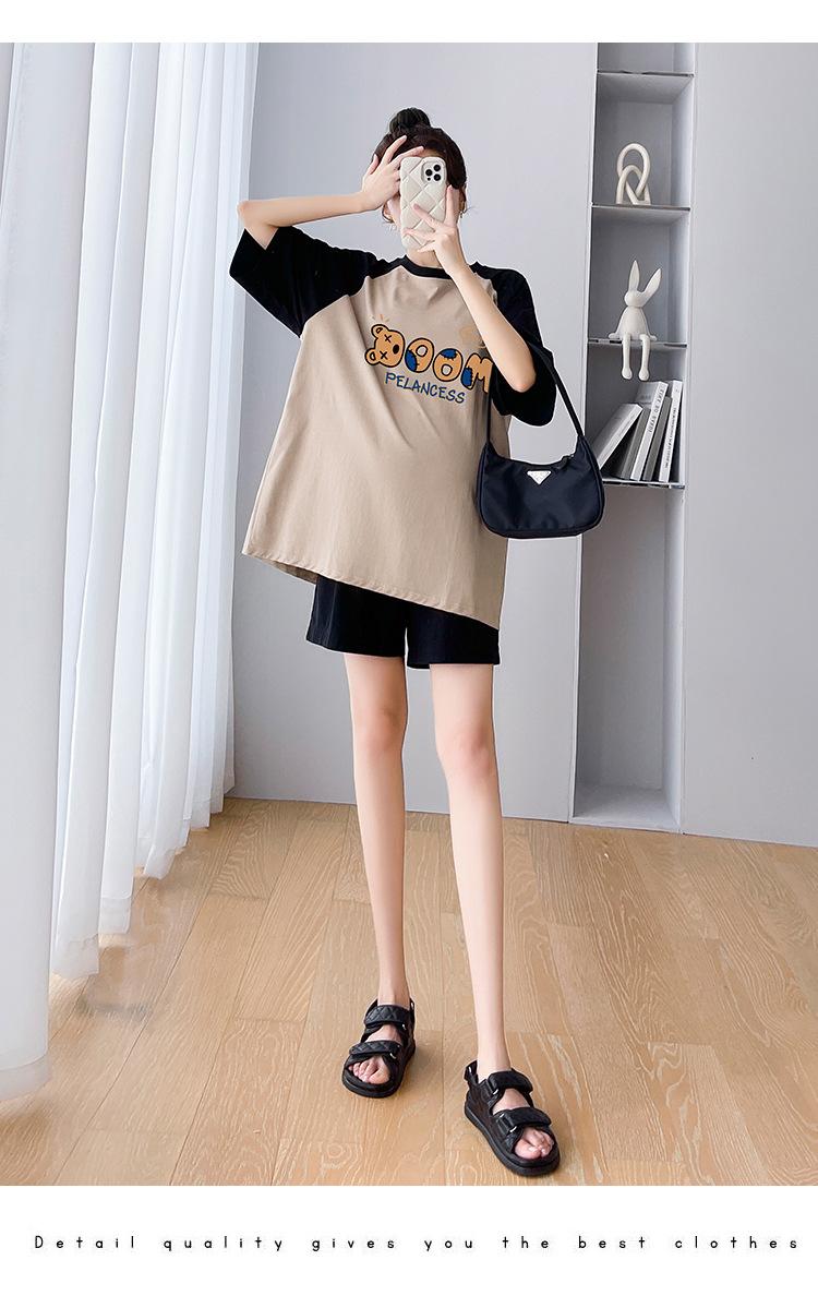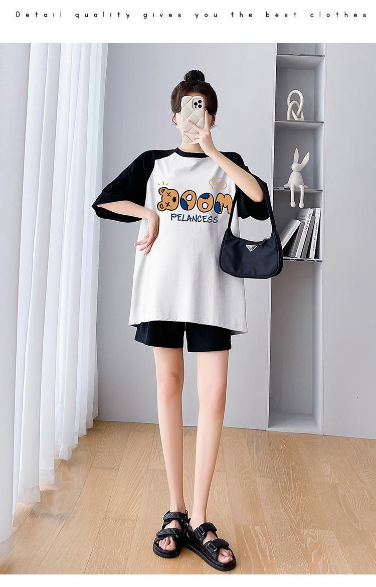Camiseta de manga corta de verano para embarazadas de celebridades de Internet, pantalones cortos holgados informales de longitud media, traje de dos piezas