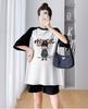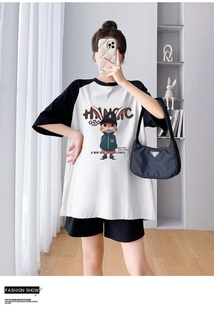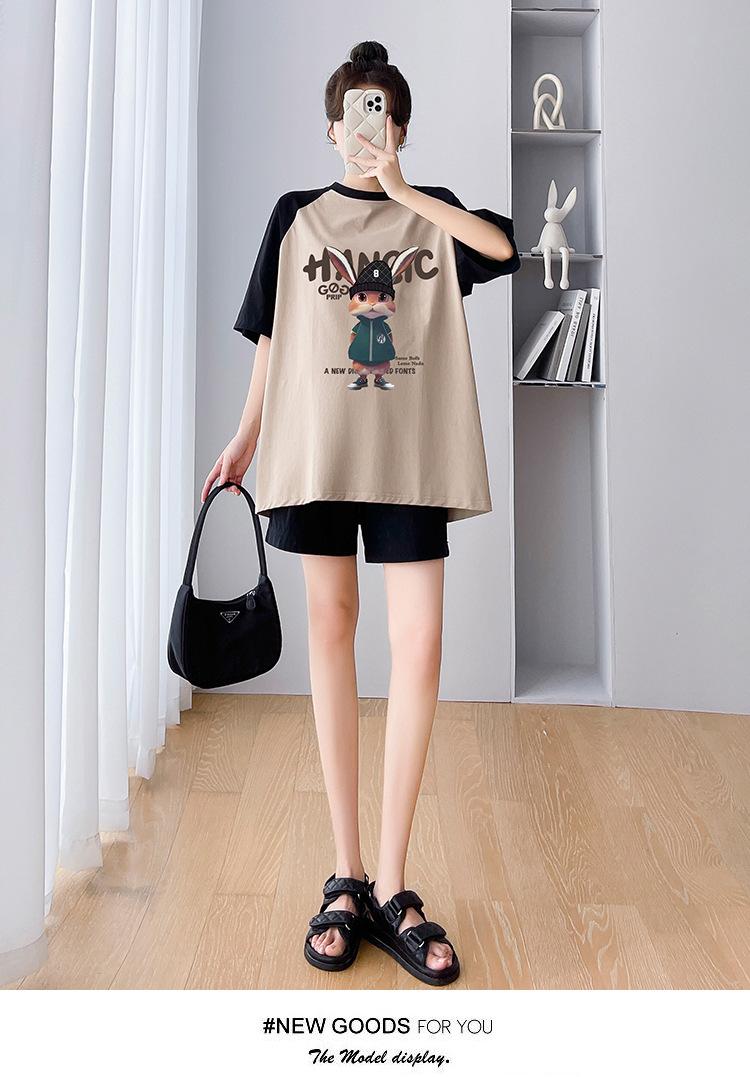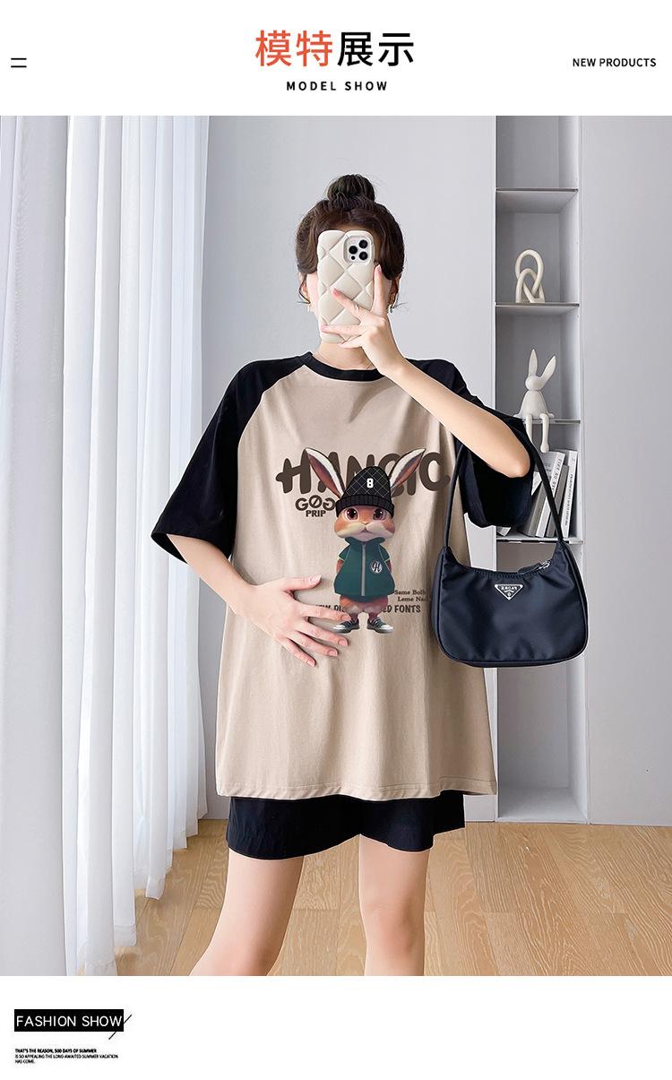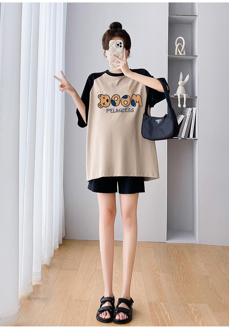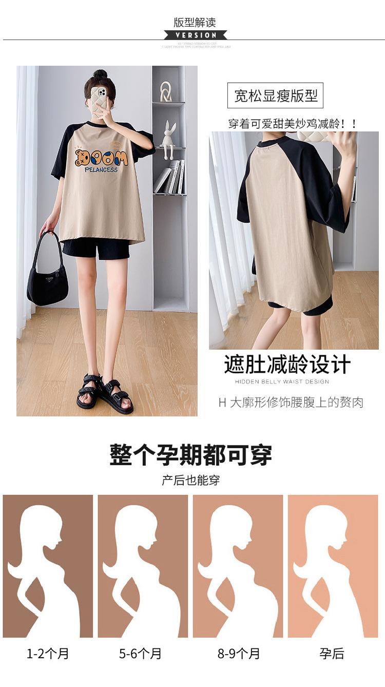 Camiseta de manga corta de verano para embarazadas de celebridades de Internet, pantalones cortos holgados informales de longitud media, traje de dos piezas