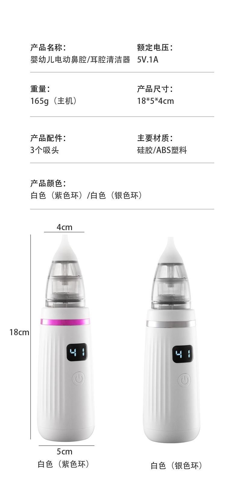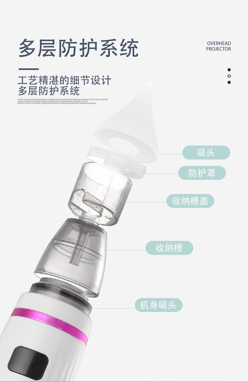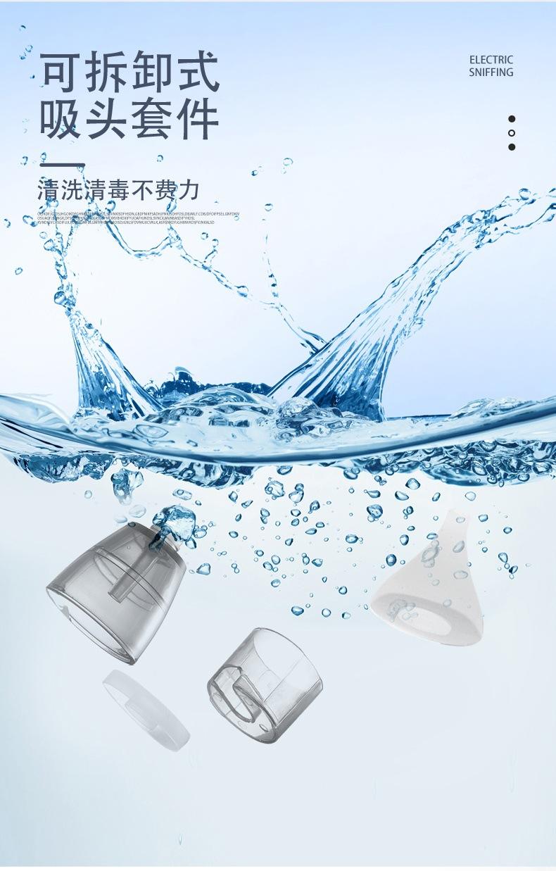 Accesorios: cuerpo + tres cabezales de succión + pinza nasal + cable USB + manual de instrucciones