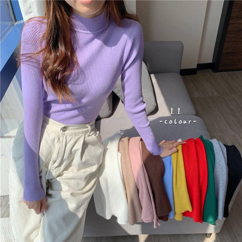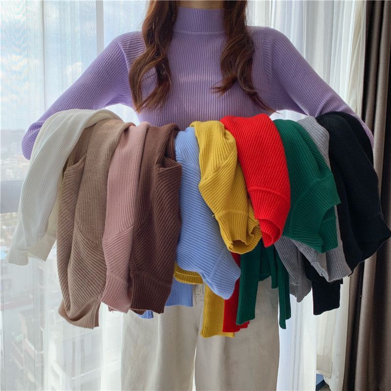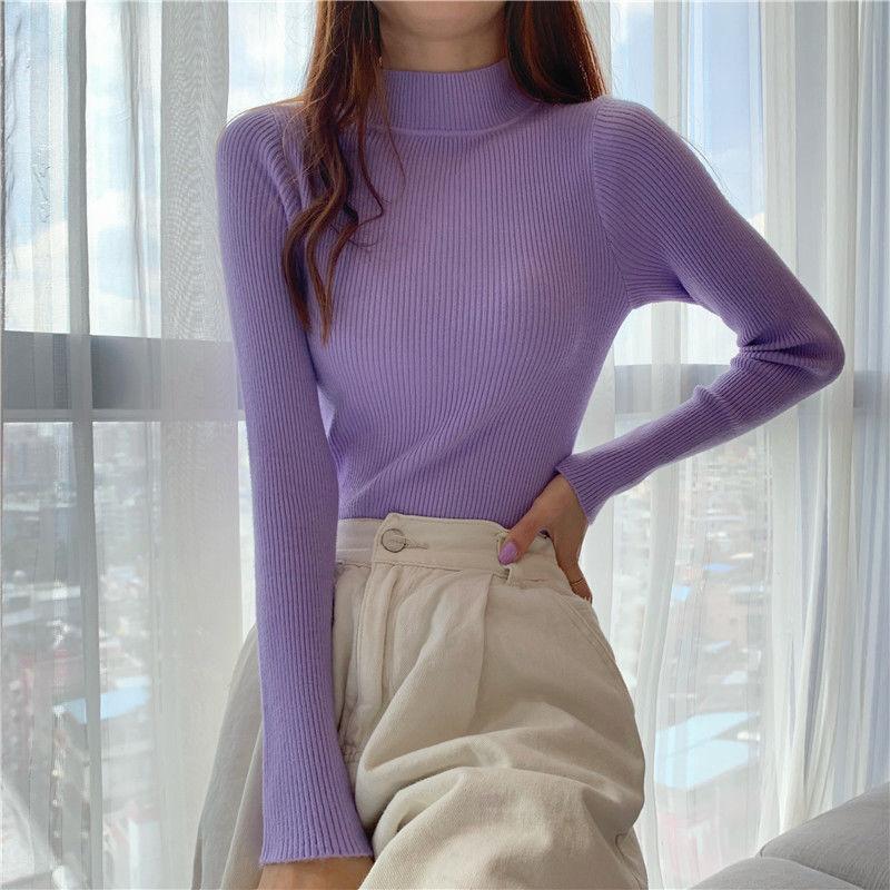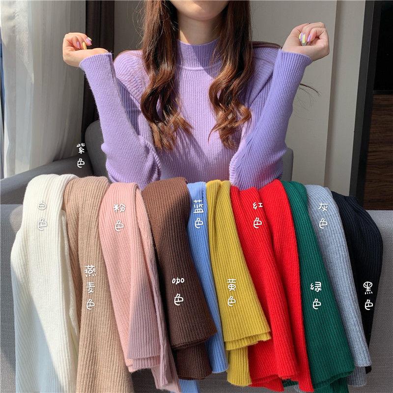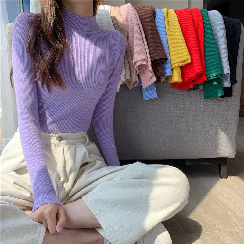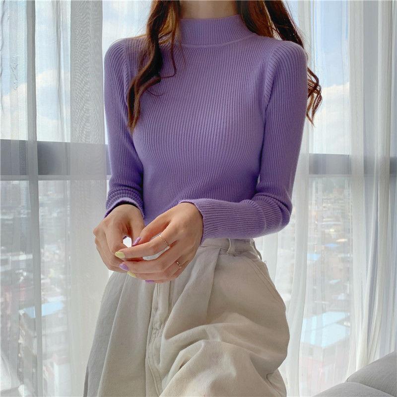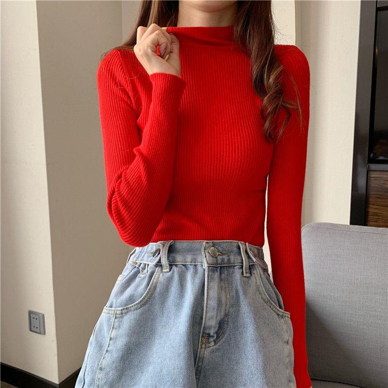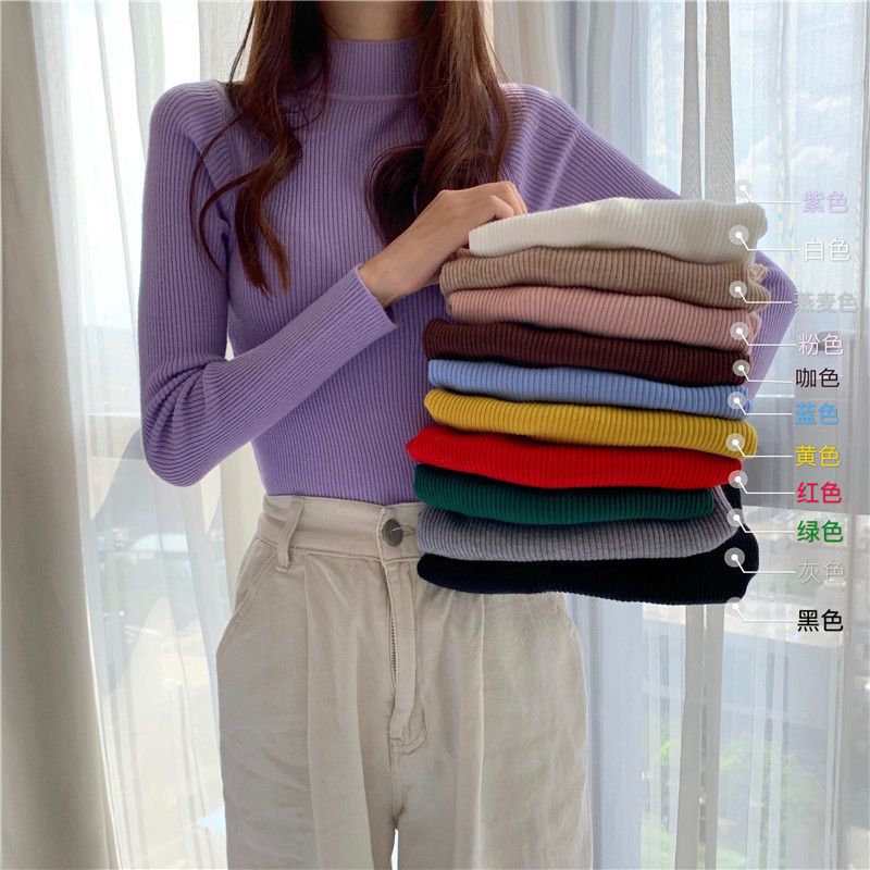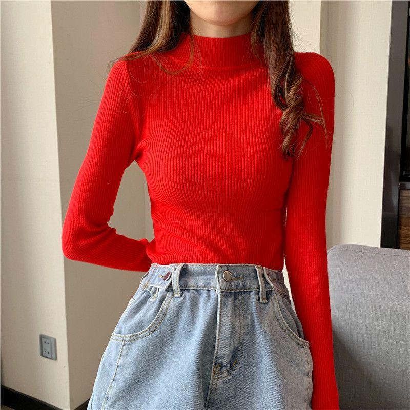 Camiseta básica de punto negro de cuello medio para mujer, nuevo estilo otoño e invierno 2022, suéter de cuello alto medio moderno y entallado