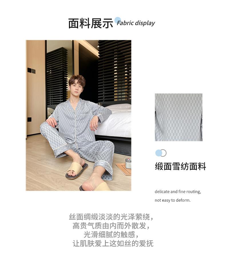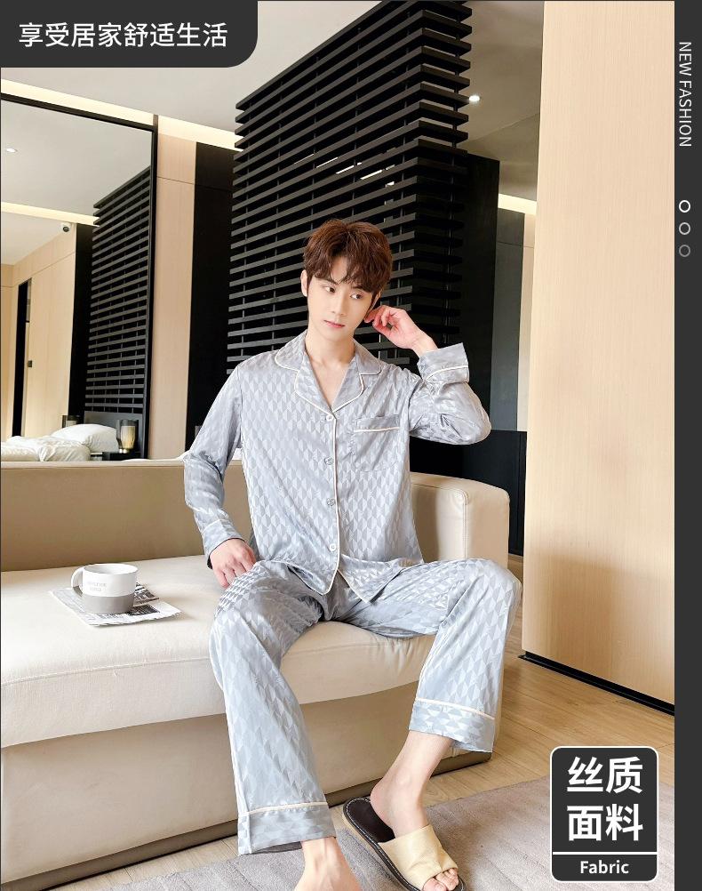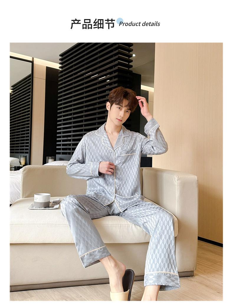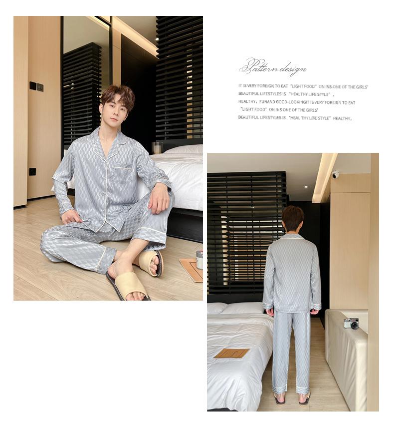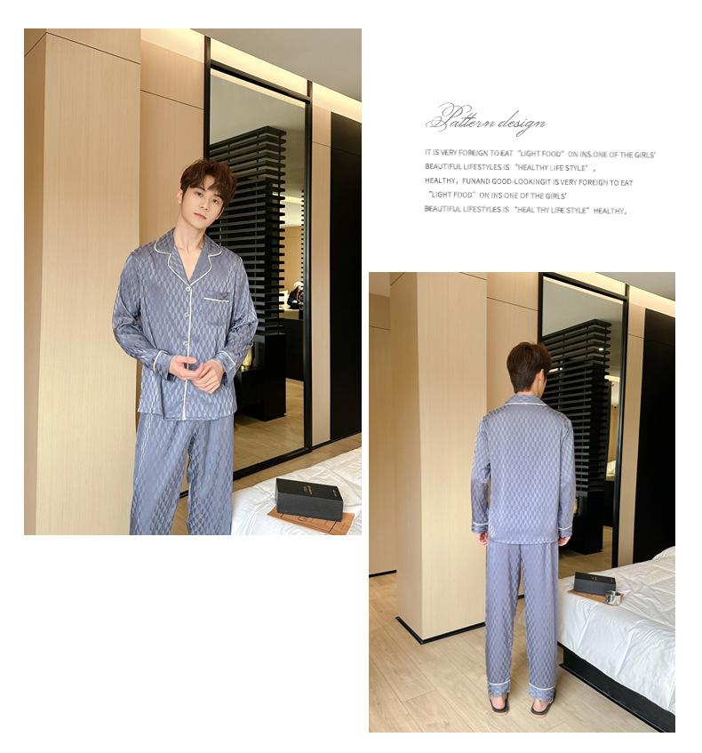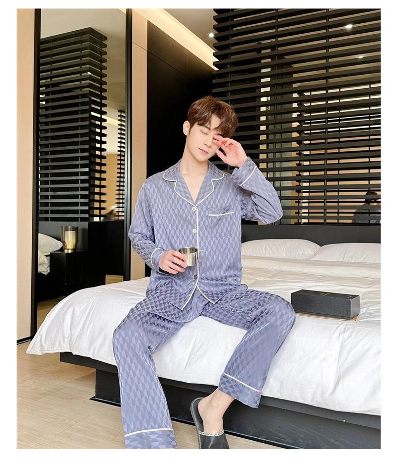 [Espejo hexagonal] pijama de lujo ligero para hombre Primavera Nuevo Seda de Hielo traje de alta gama seda moda simple ropa de casa