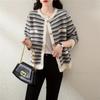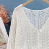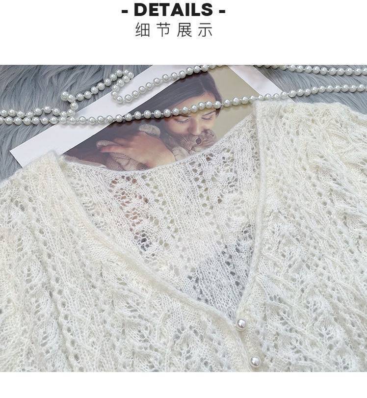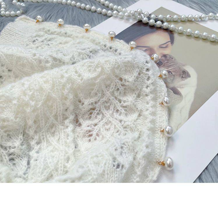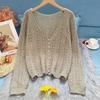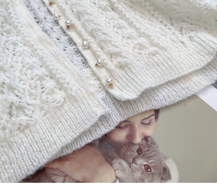 Cárdigan de punto Top de otoño temprano e invierno para chicas gorditas talla grande Hebilla de perla Estilo holgado Calado Hippy Suéter de piel Chaqueta para mujer