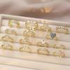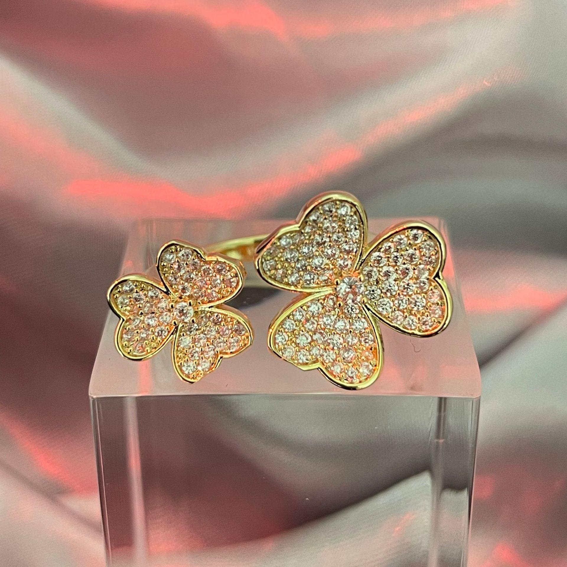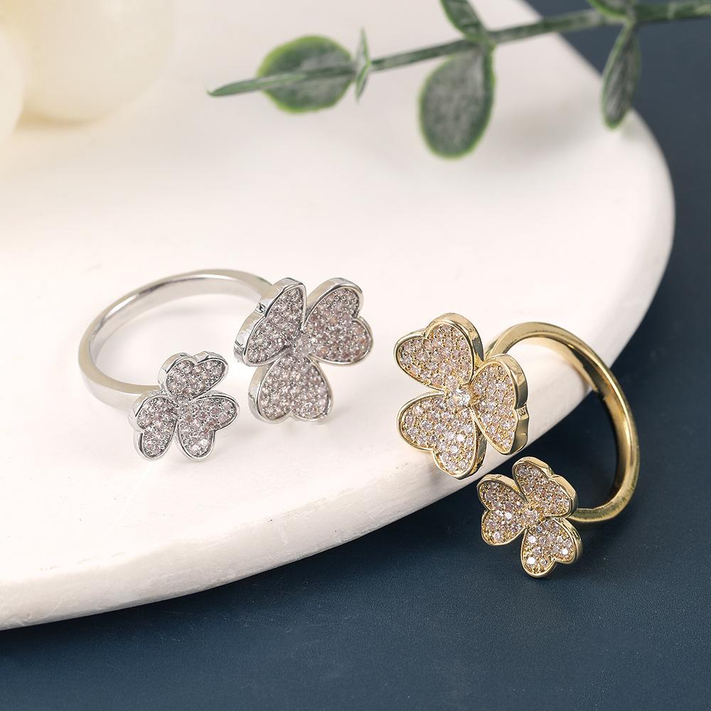 Anillo Abierto de Flor Transfronterizo Europeo y Americano, Anillo de Dedo Índice Pequeño Fresco con Diamantes Completos, Joyería de Mano de Circonita con Temperamento de Lujo Ligero Chapado en Oro Cobre para Mujeres