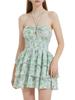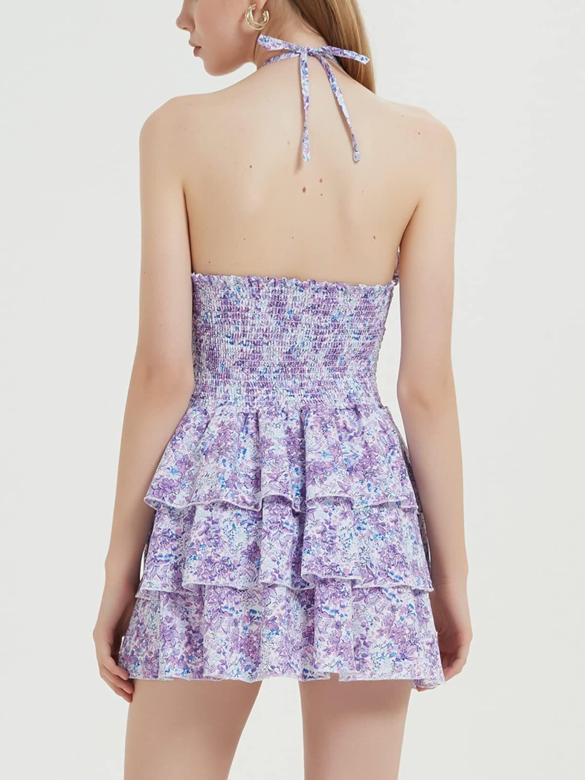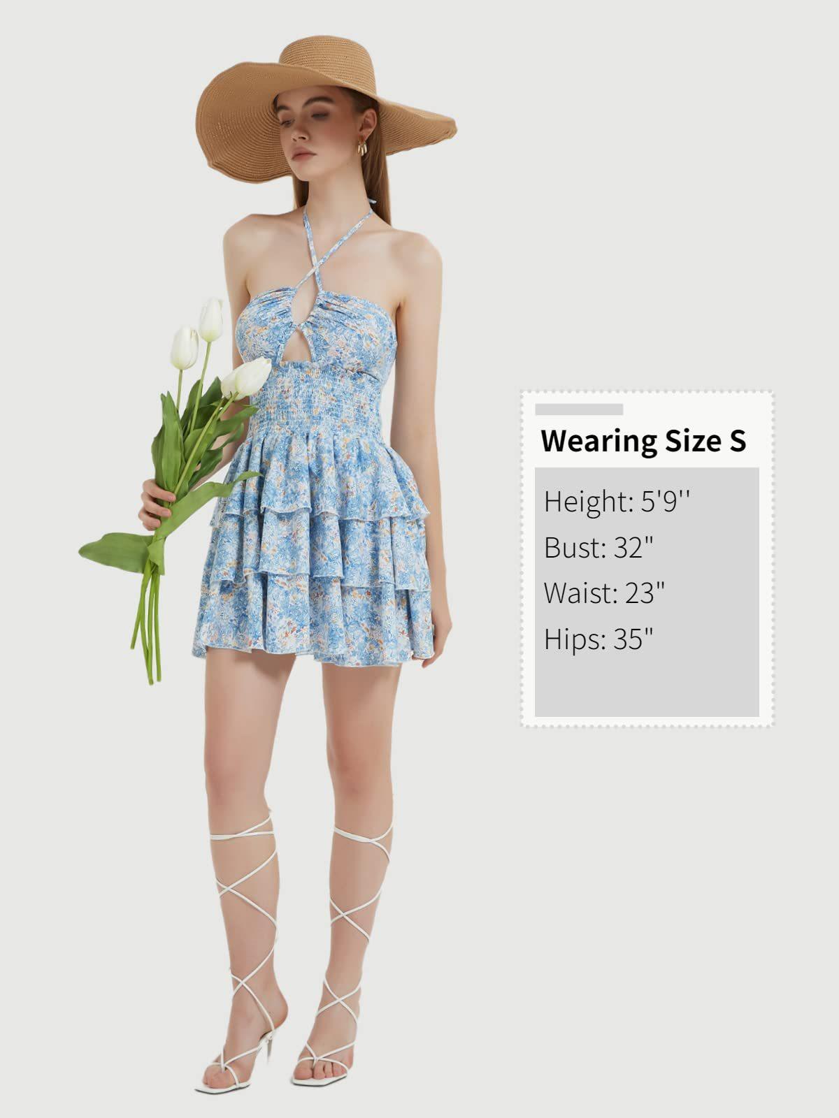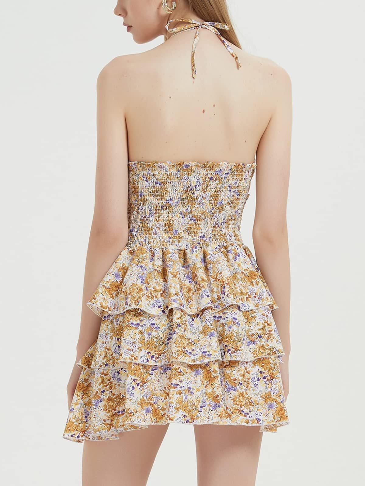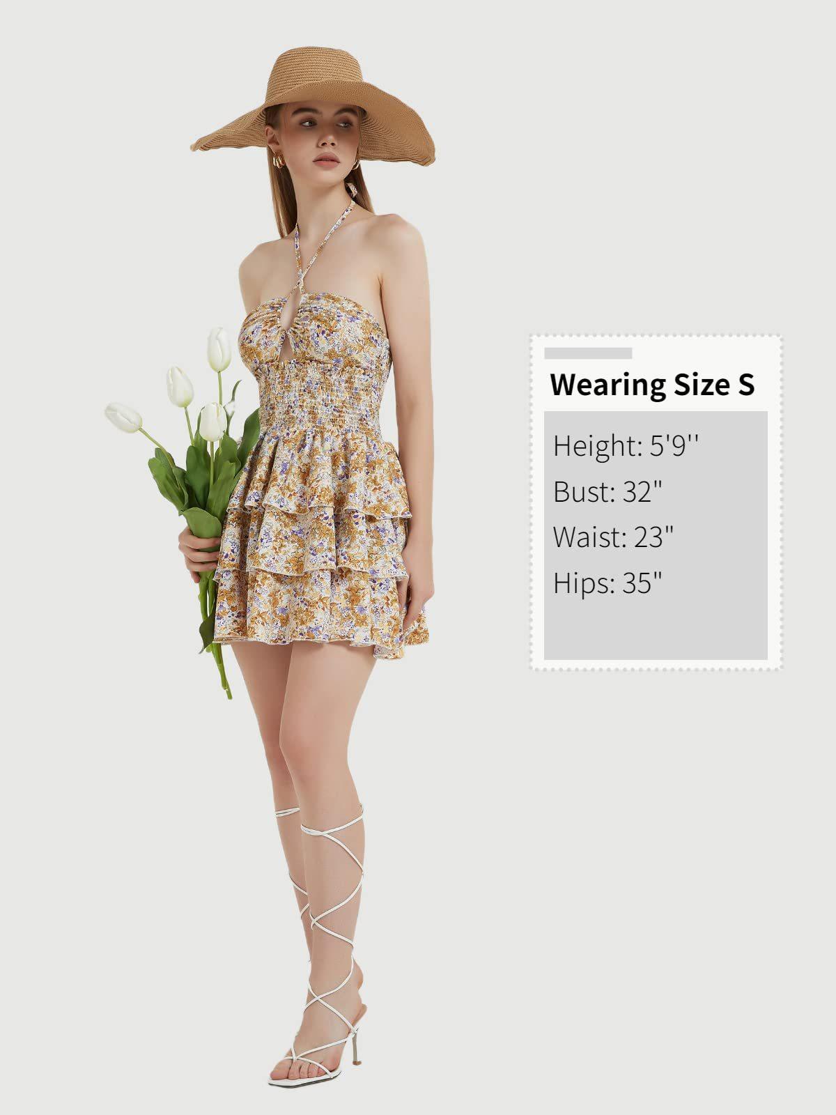 Vestido de tul de una pieza corto ajustado con cuello colgante, sexy, estampado floral, de cuerpo entero, estilo europeo y americano, S32162