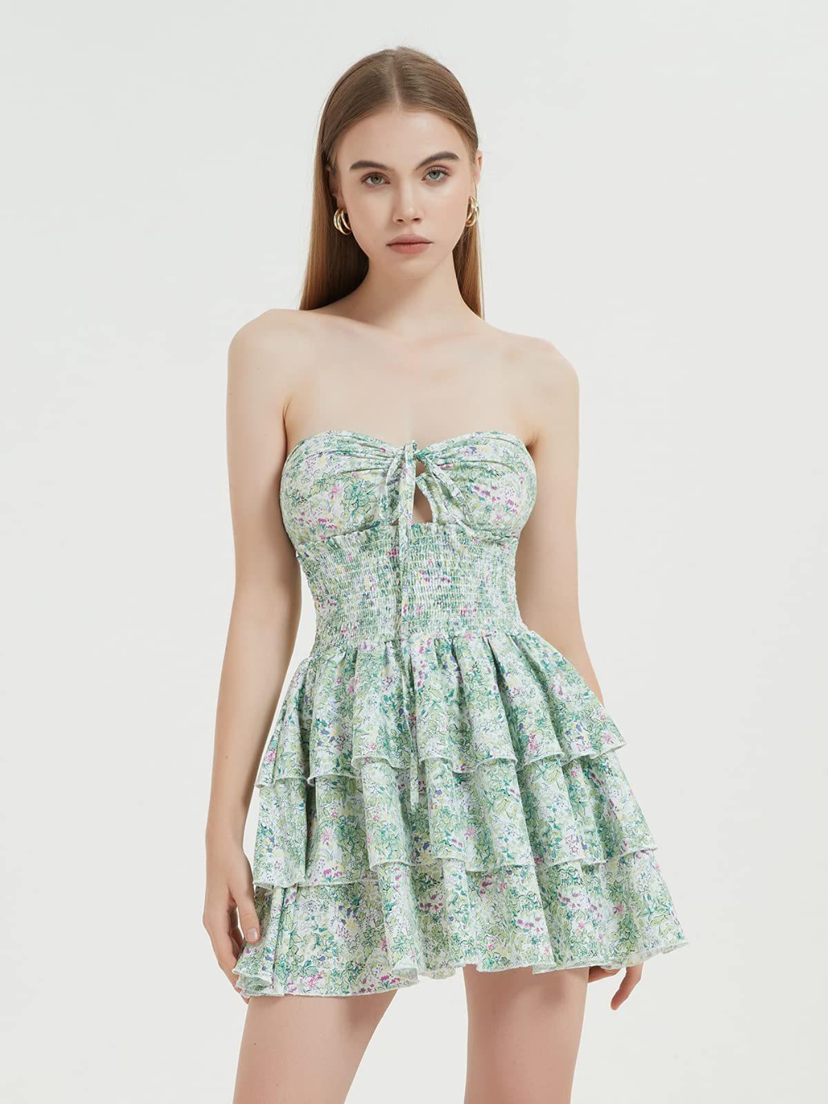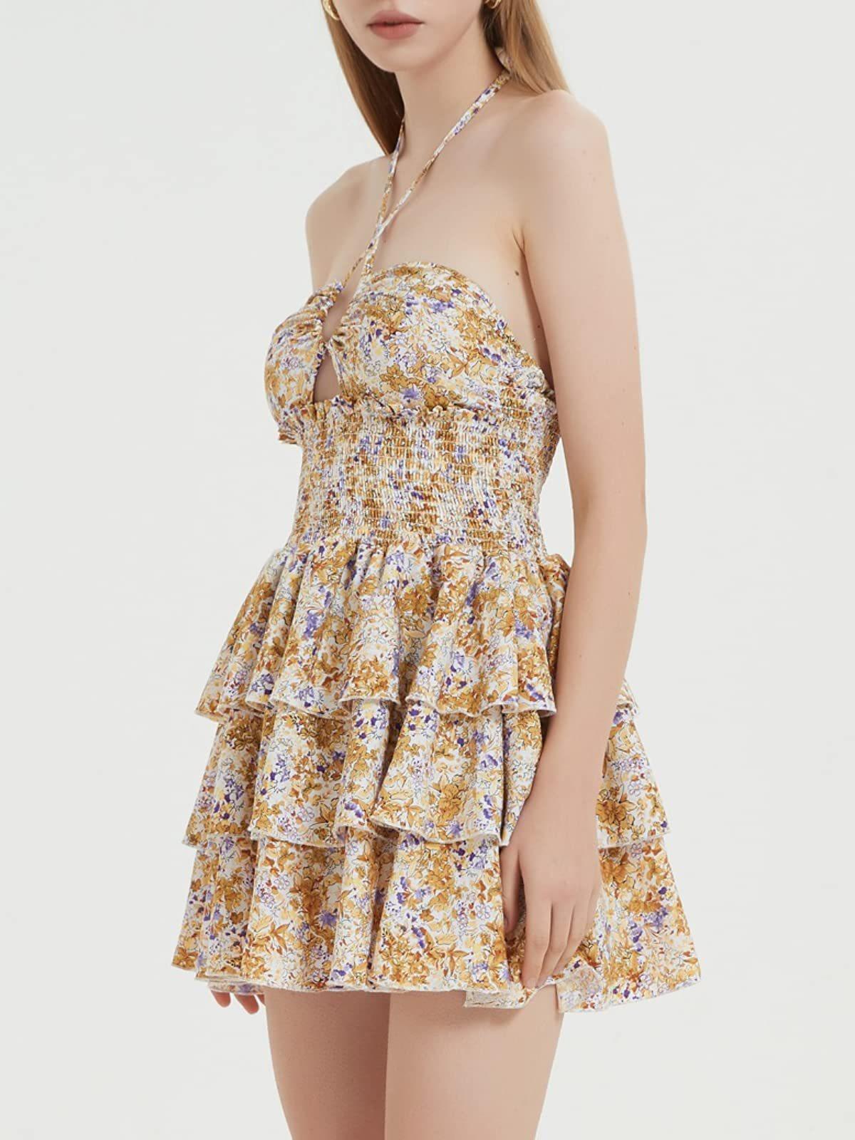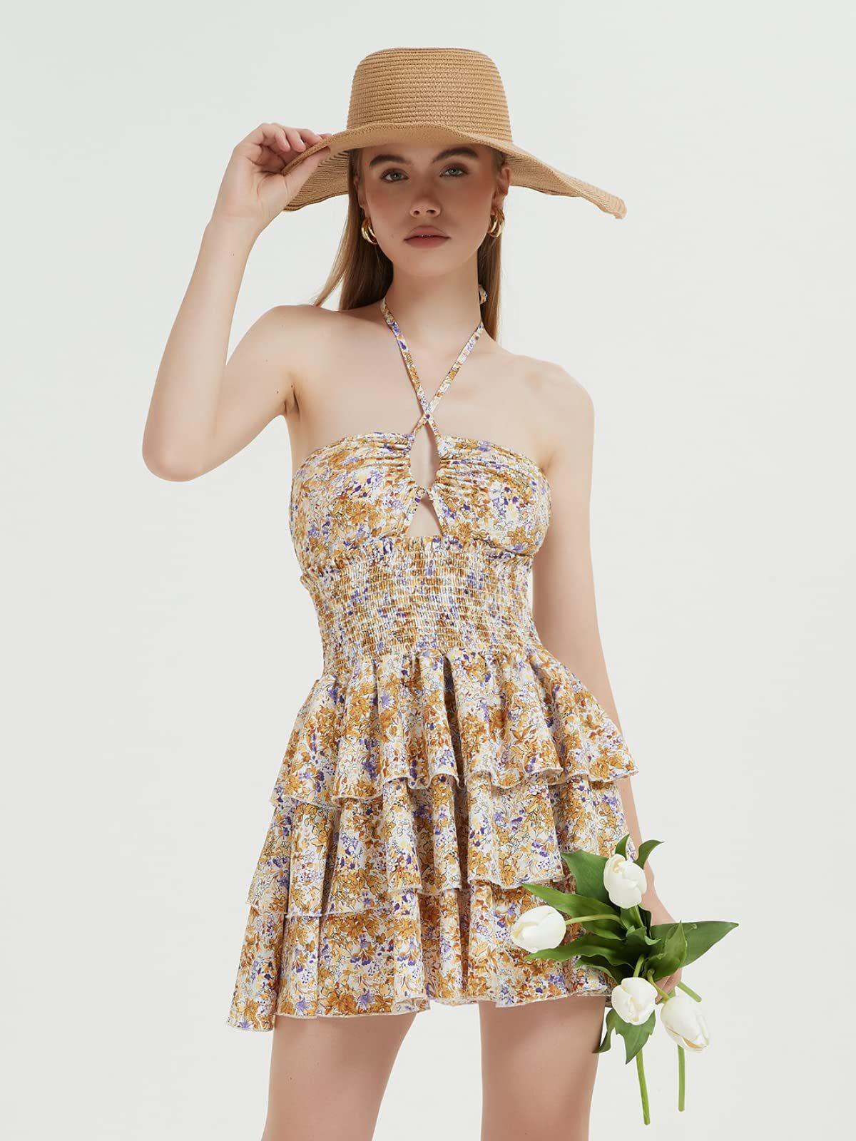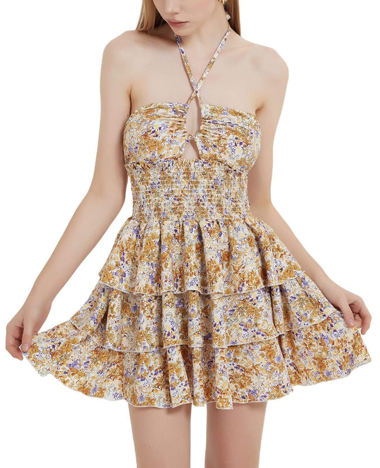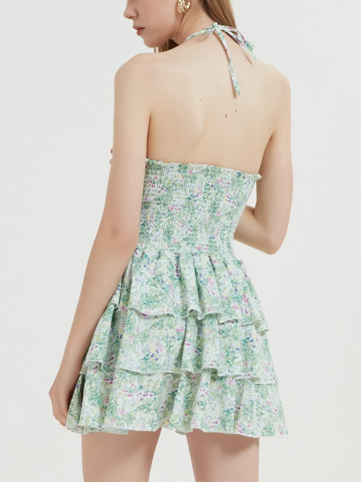 Vestido de tul de una pieza corto ajustado con cuello colgante, sexy, estampado floral, de cuerpo entero, estilo europeo y americano, S32162