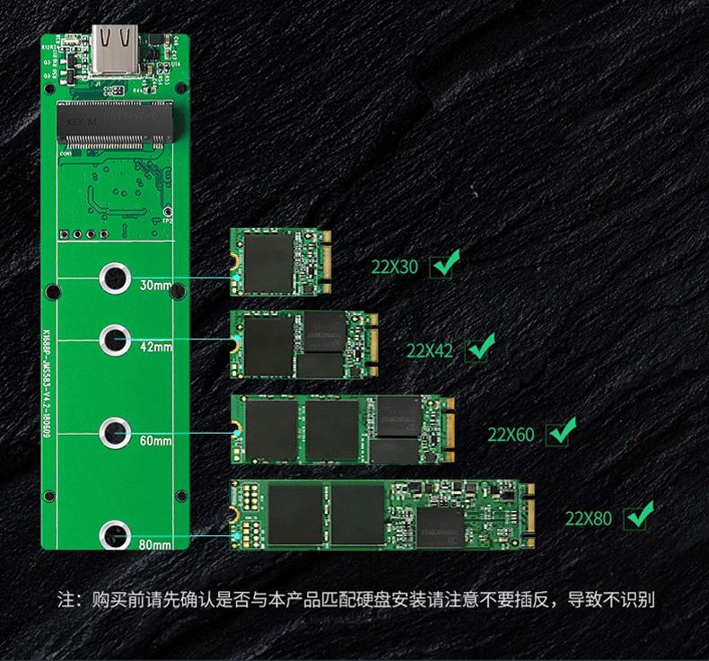 Soporta 22* 30mm.22 *42MM, 22*60MM, 22*80MM NGFF(también llamado m. 2) disco duro de estado sólido (este producto no contiene disco duro)