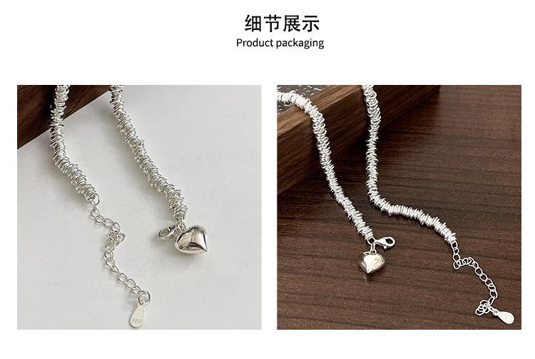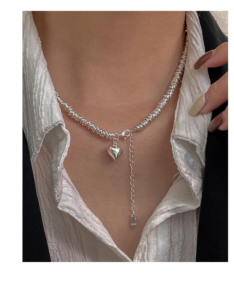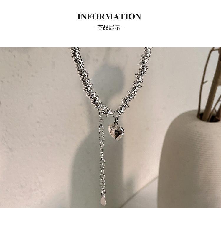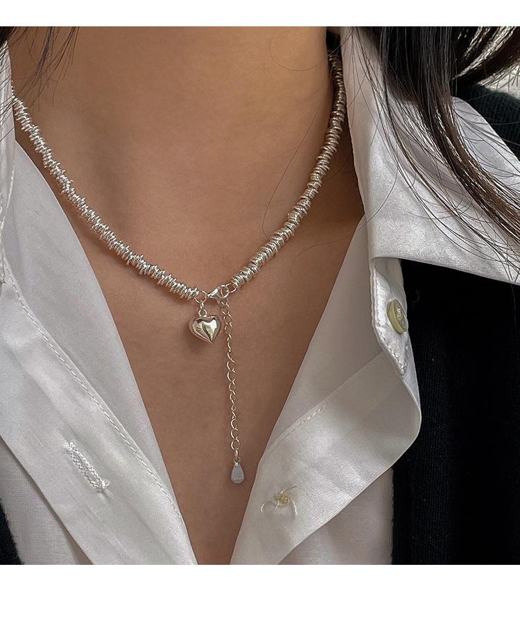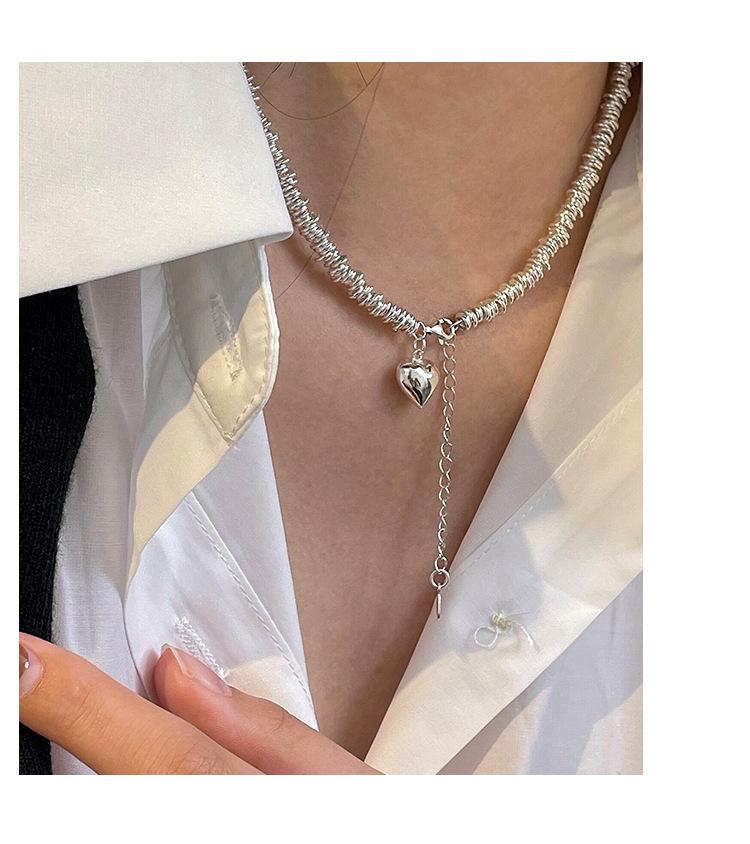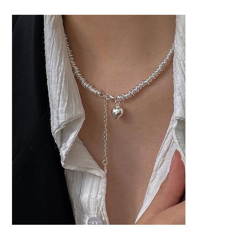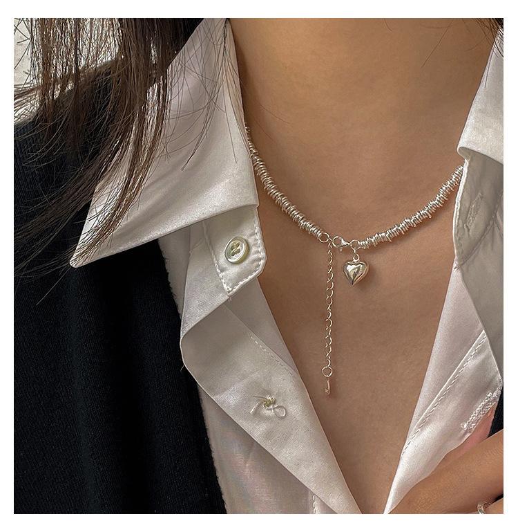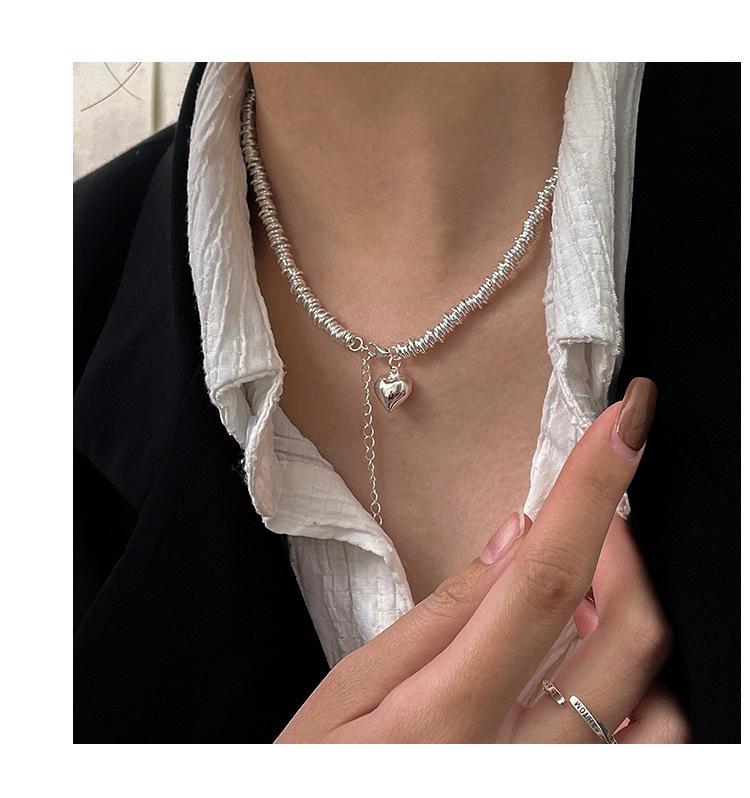 Collar de plata de ley 925 para mujer, collar tridimensional de amor sólido, nicho coreano, nuevo, de alta gama, anillo de plata con cadena de clavícula