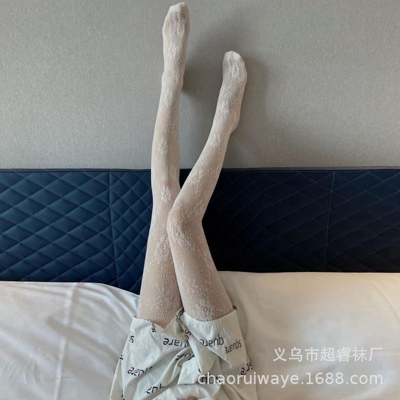 Medias Blancas Sexy de Rosa Negra para Mujer Verano Delgadas Pantimedias de Rosa Ins Tendencia para Mujer