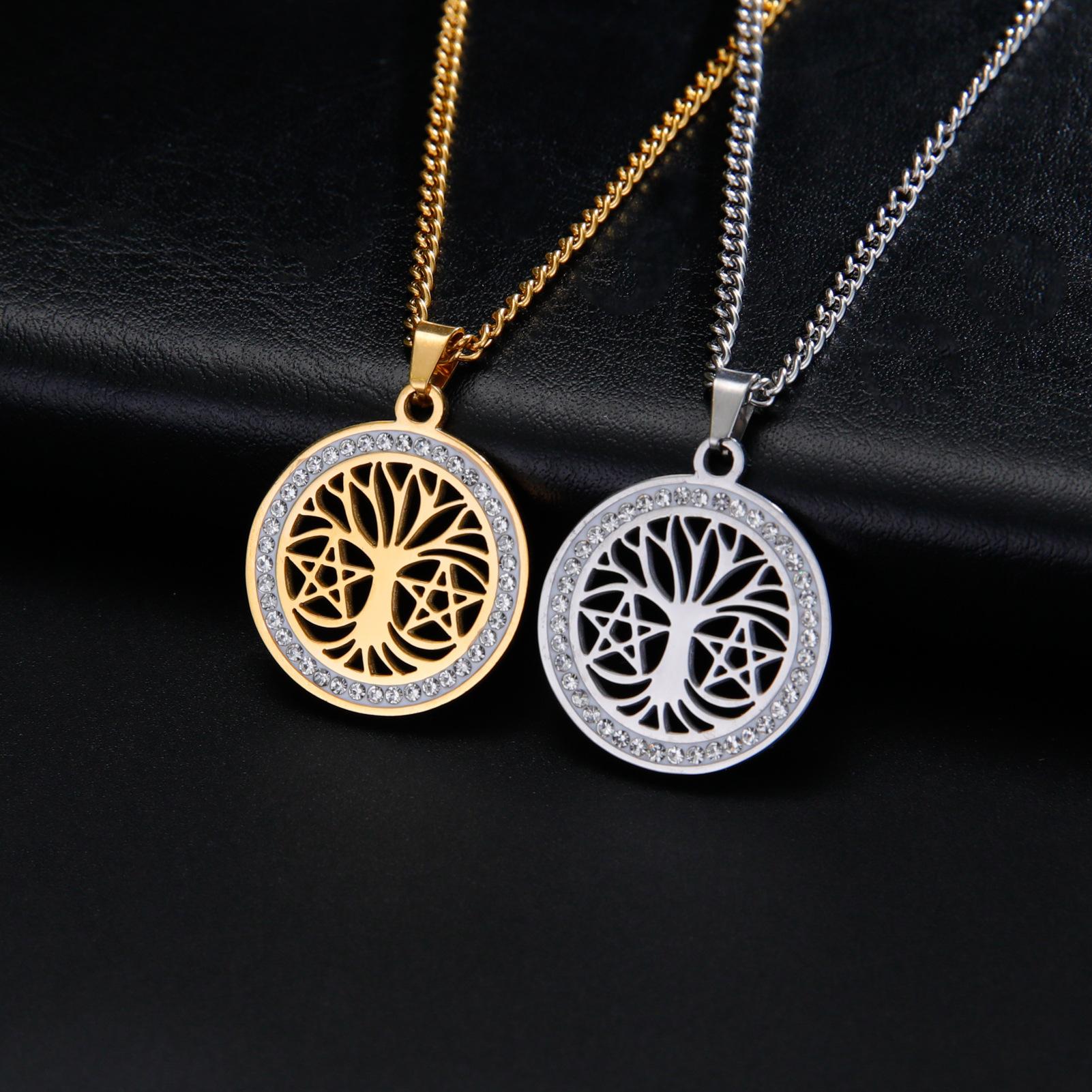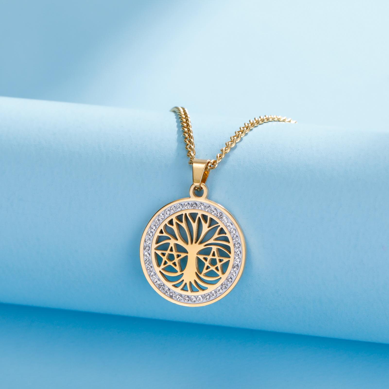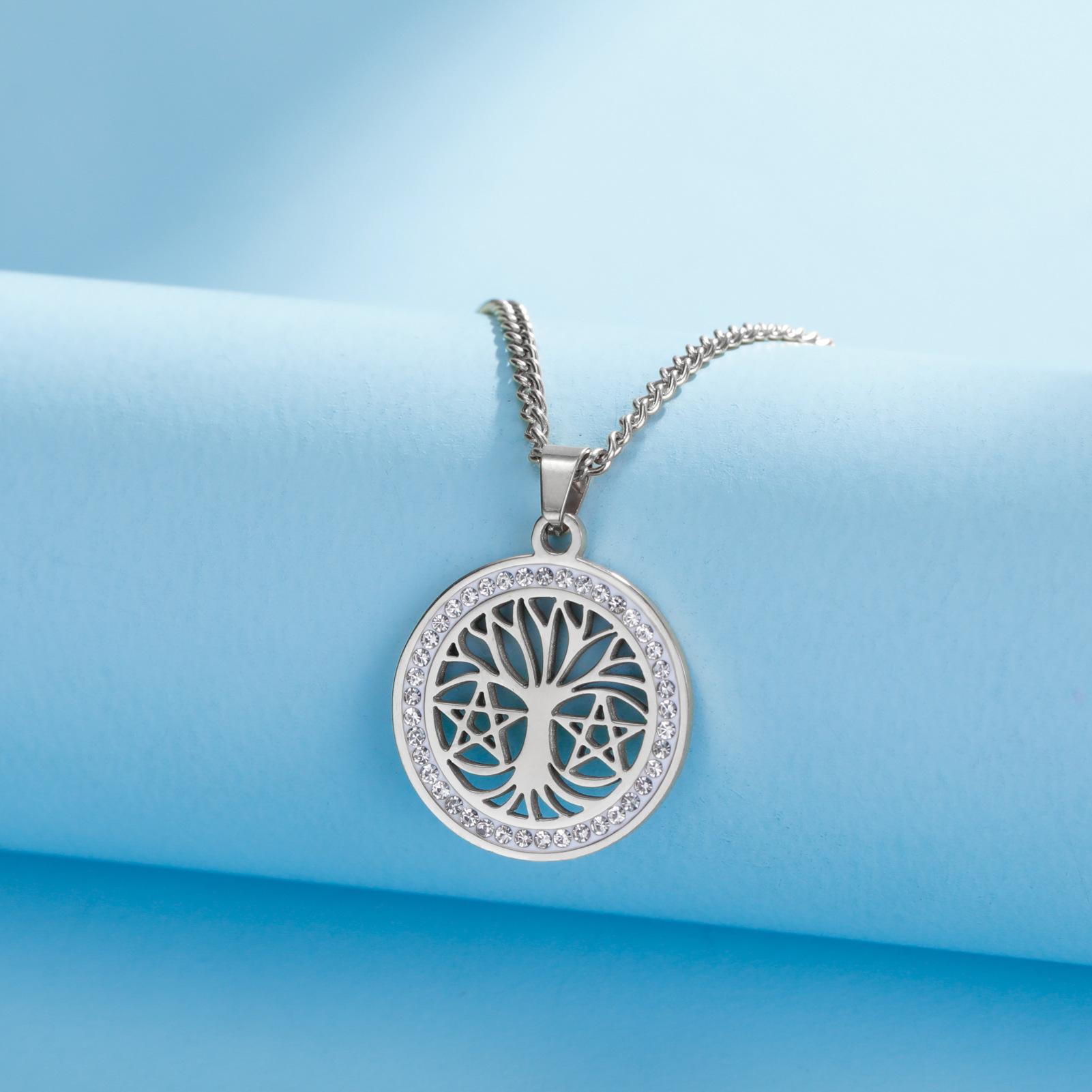 Collar de árbol de la vida de venta caliente transfronteriza europea y americana, collar de estrella de seis puntas con árbol de la vida hueco de alta calidad de acero de titanio para mujer