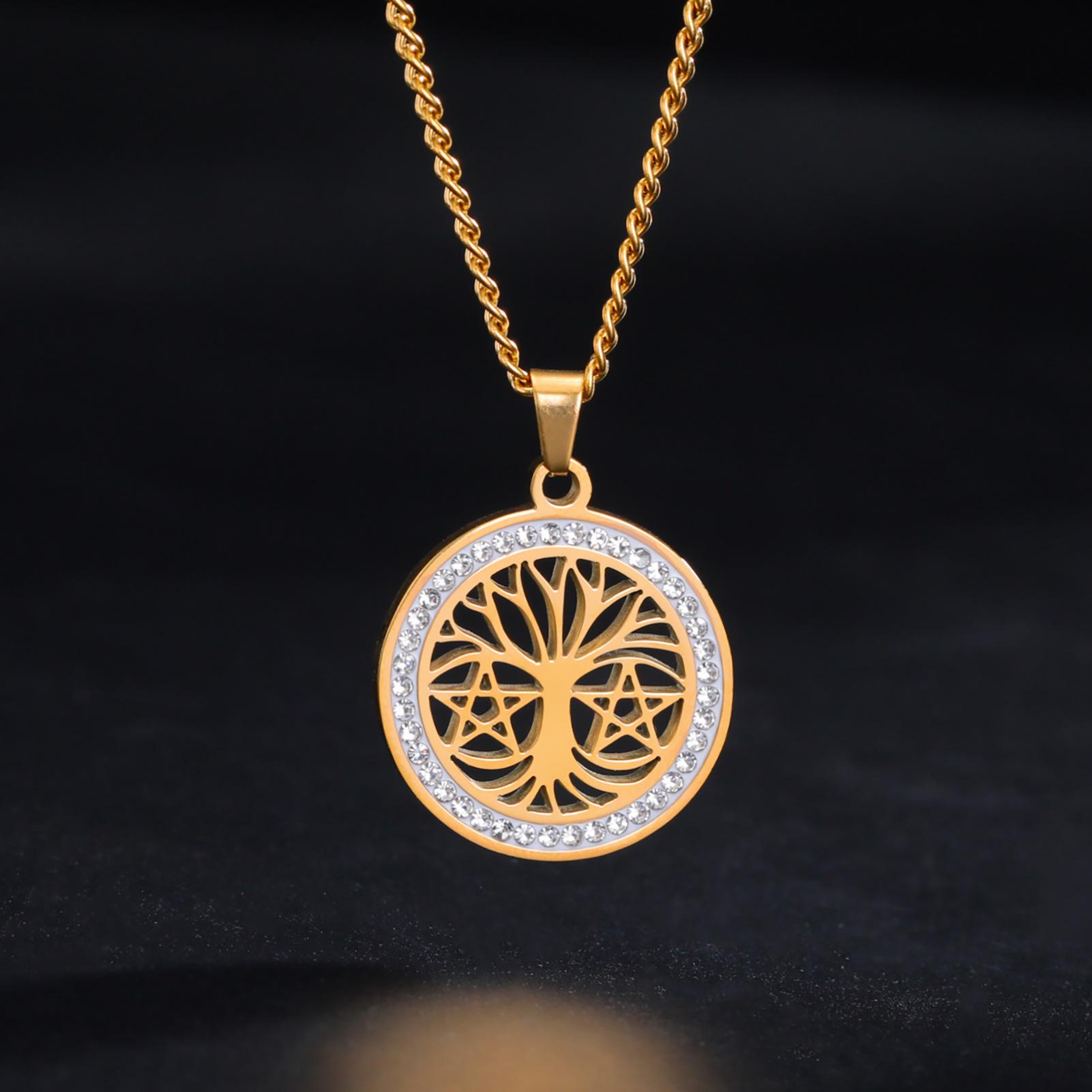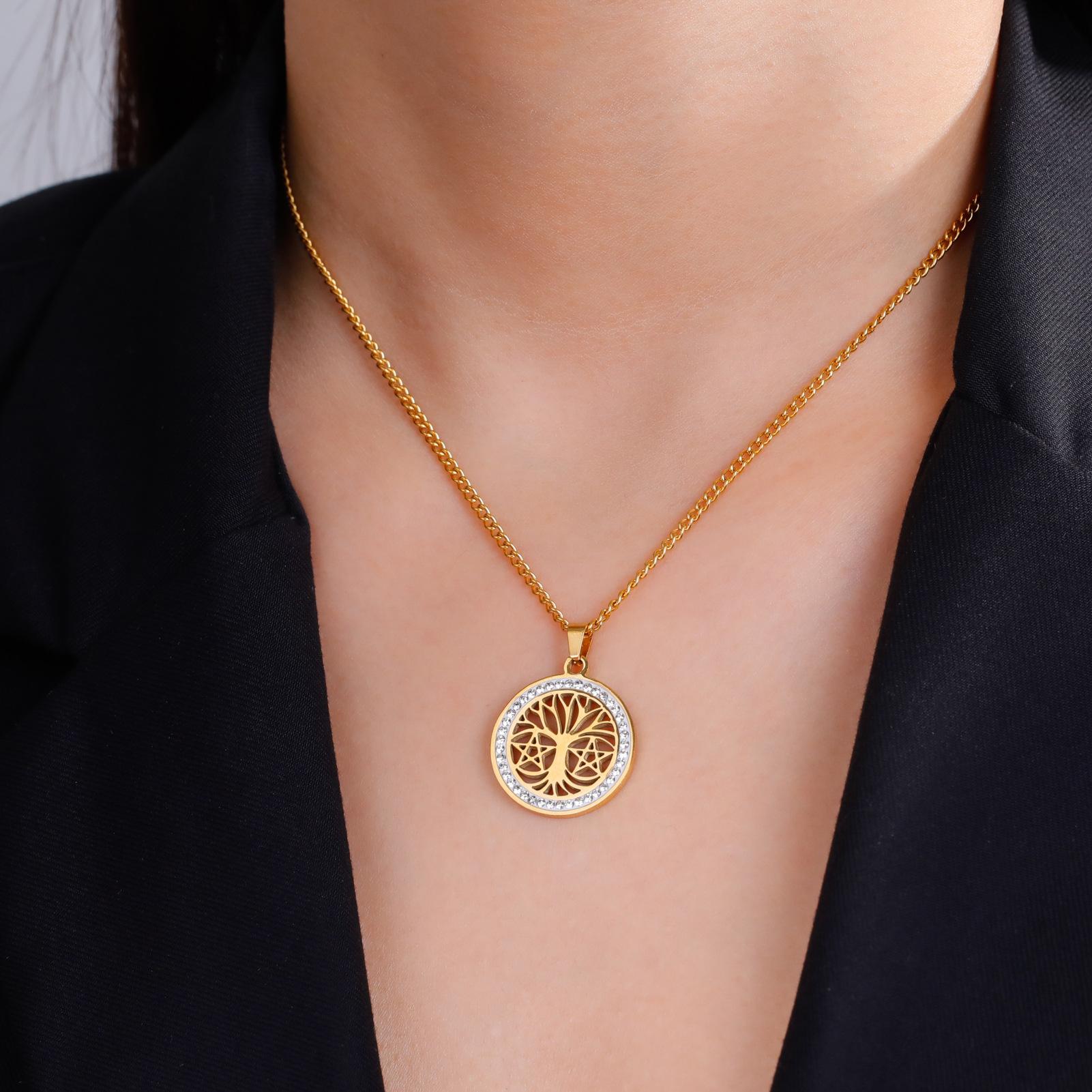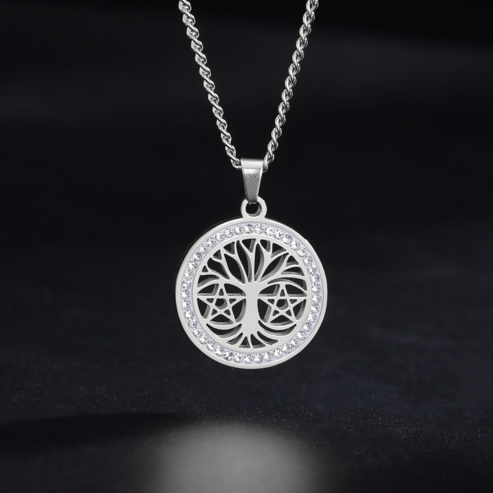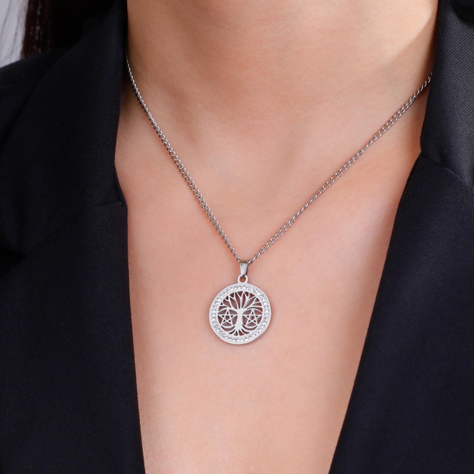 Collar de árbol de la vida de venta caliente transfronteriza europea y americana, collar de estrella de seis puntas con árbol de la vida hueco de alta calidad de acero de titanio para mujer