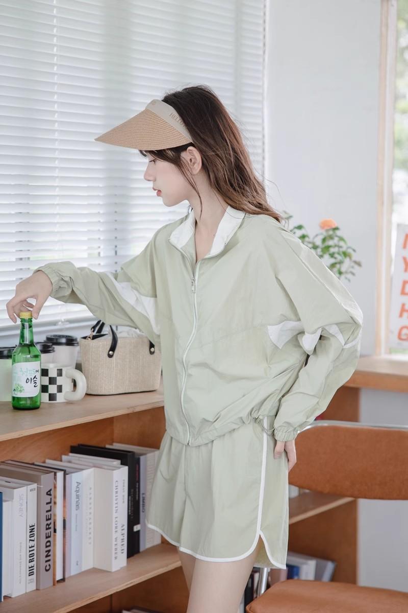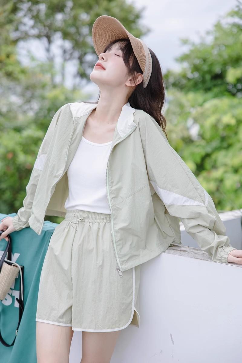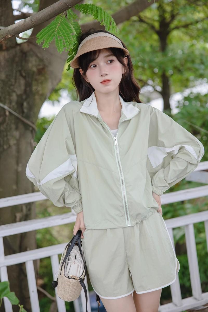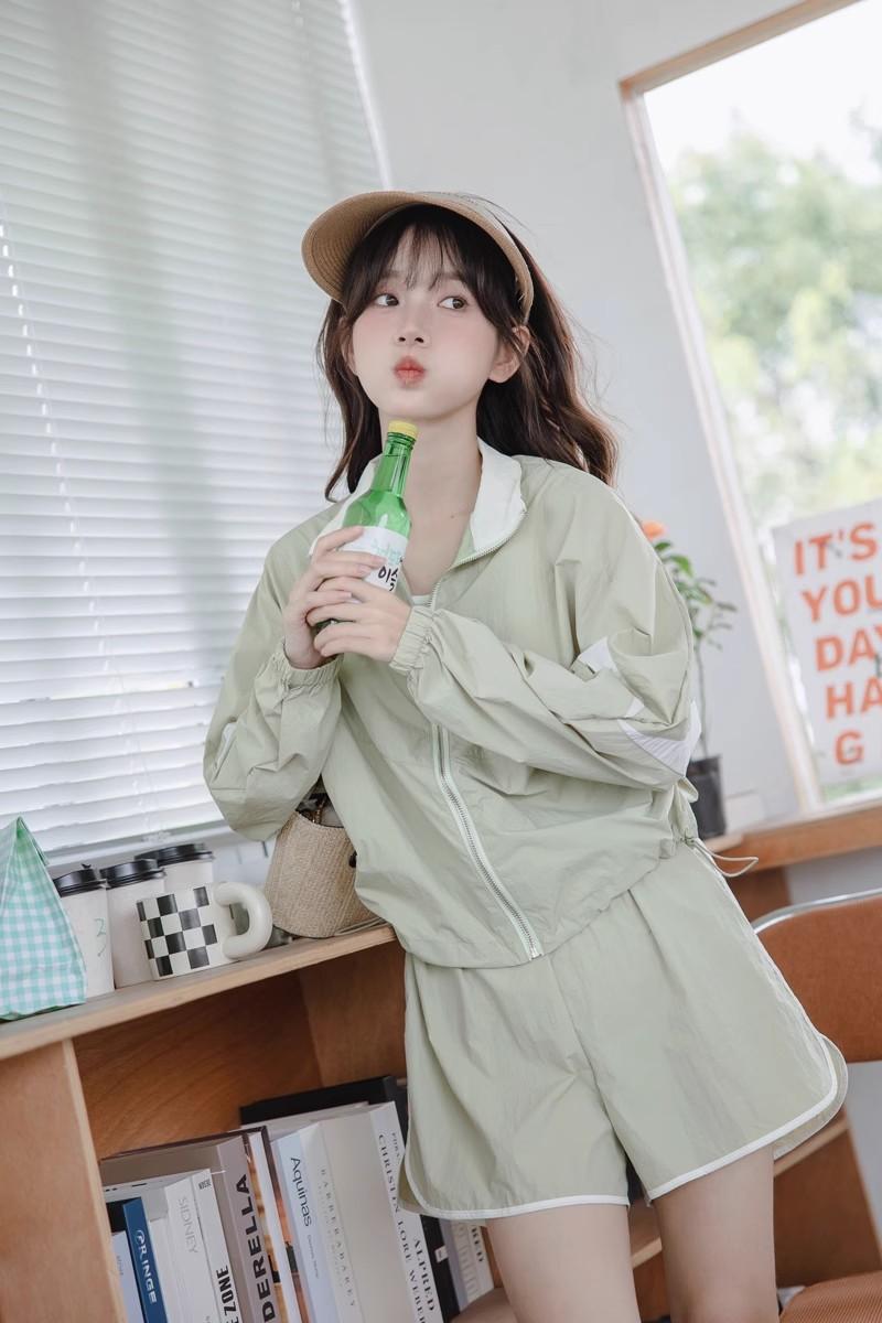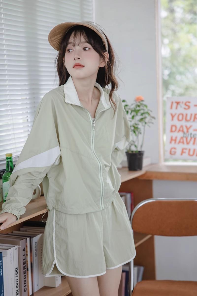 Traje de estudiante Ropa de verano para mujer 2024 Nueva Ropa casual protectora del sol Ropa deportiva para mujer de dos piezas Adelgazante Pantalones cortos sueltos