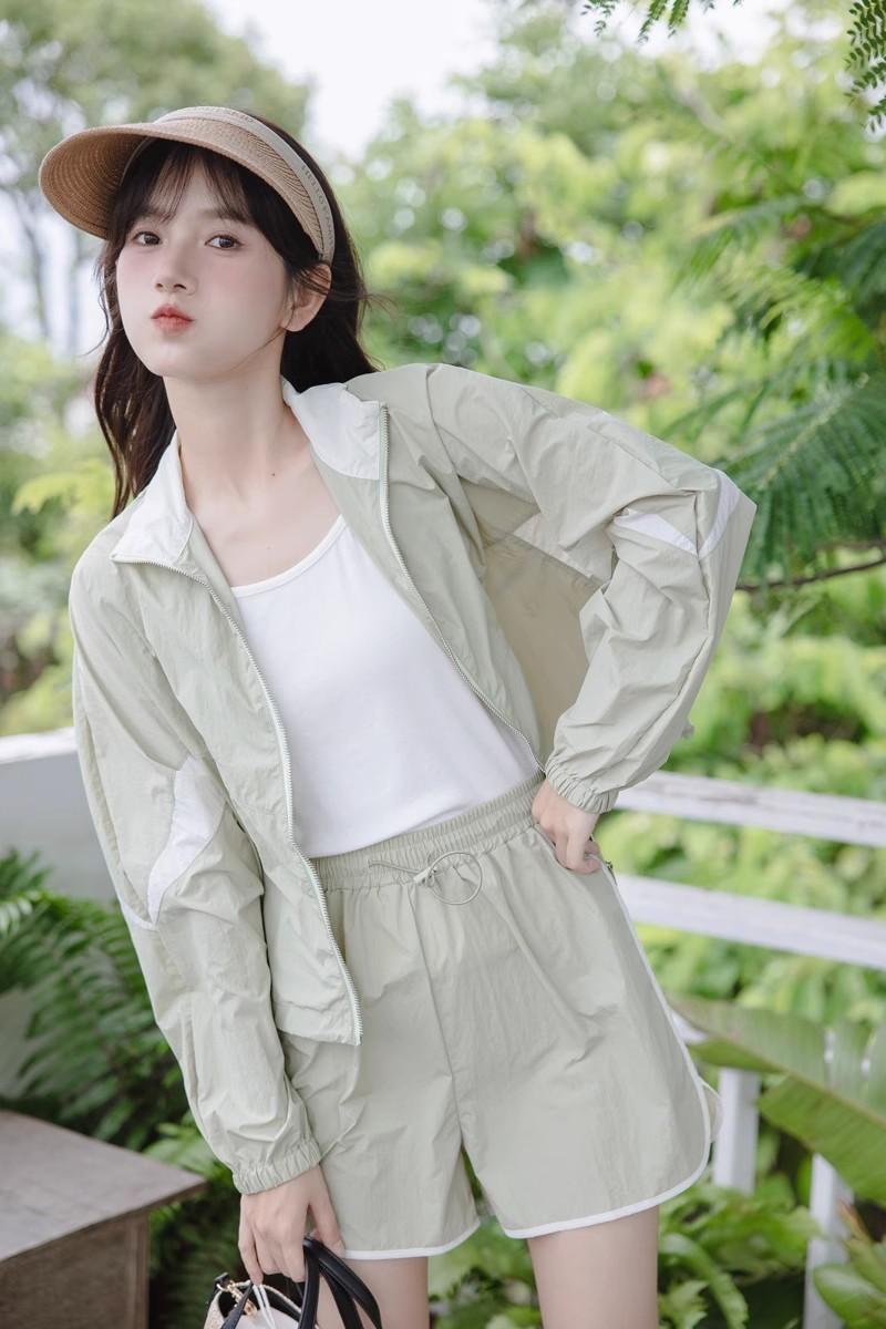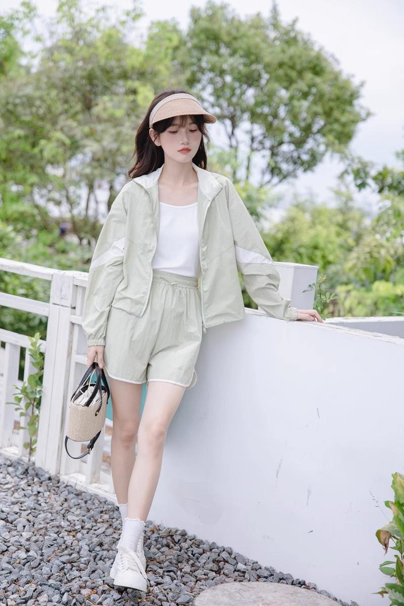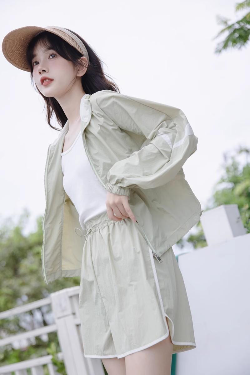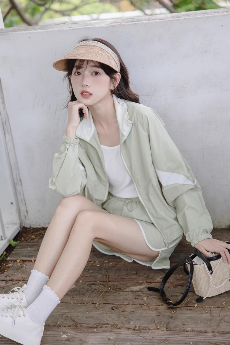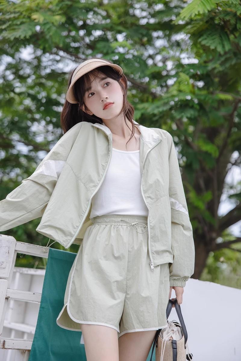 Traje de estudiante Ropa de verano para mujer 2024 Nueva Ropa casual protectora del sol Ropa deportiva para mujer de dos piezas Adelgazante Pantalones cortos sueltos