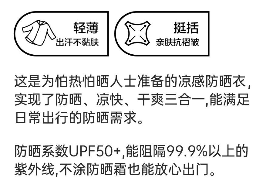 Punto de venta: Tejido de seda de hielo de alta calidad. Fresco en la parte superior del cuerpo. Cómodo, transpirable y refrescante. Previene eficazmente la luz fuerte y bloquea los rayos ultravioleta UPF50+