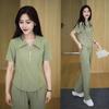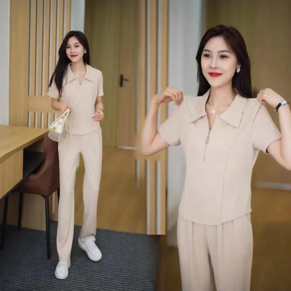 Conjunto de dos piezas de verano 2024, estilo occidental, fino, informal, deportivo, con cremallera y parte superior ancha