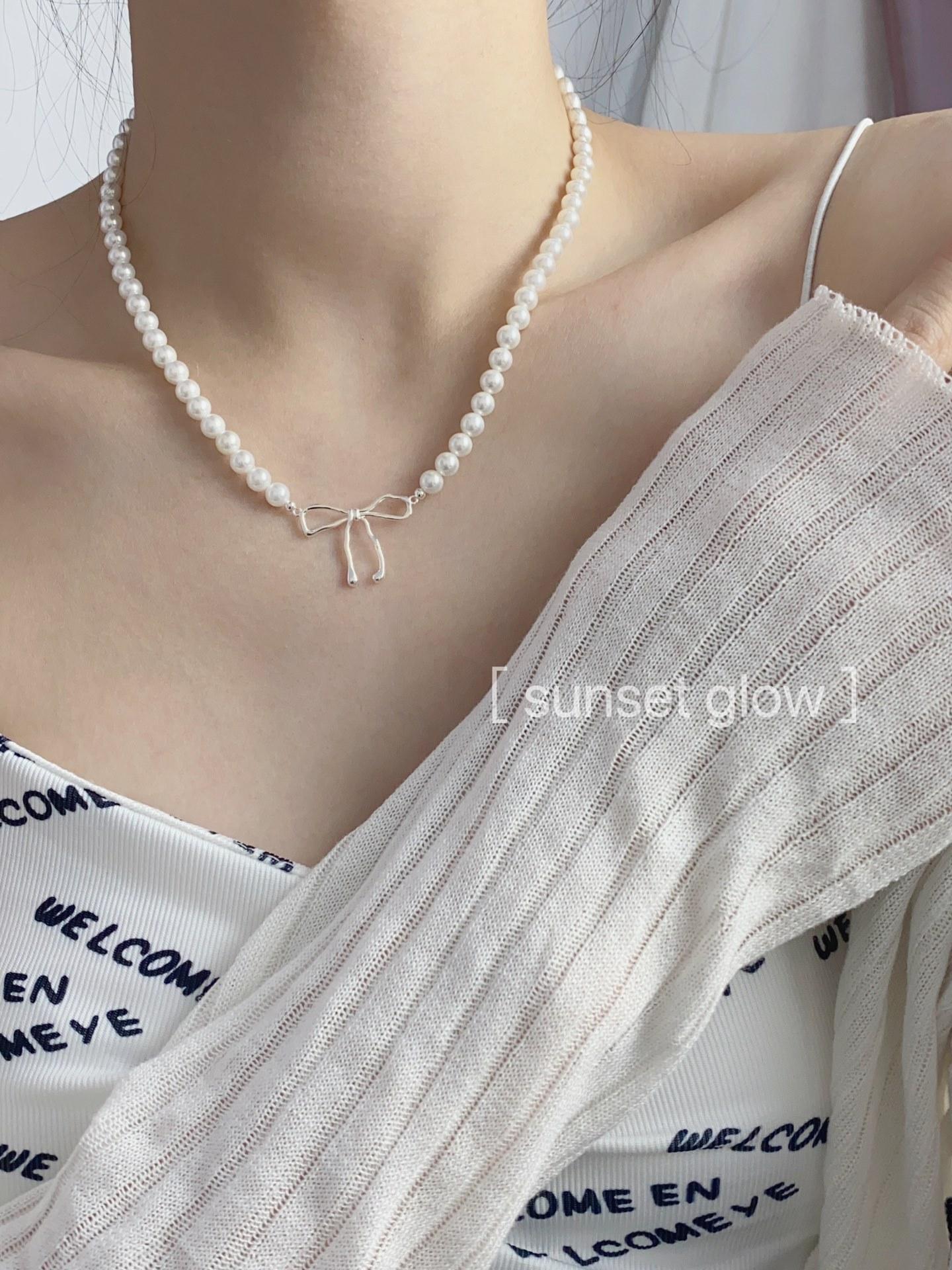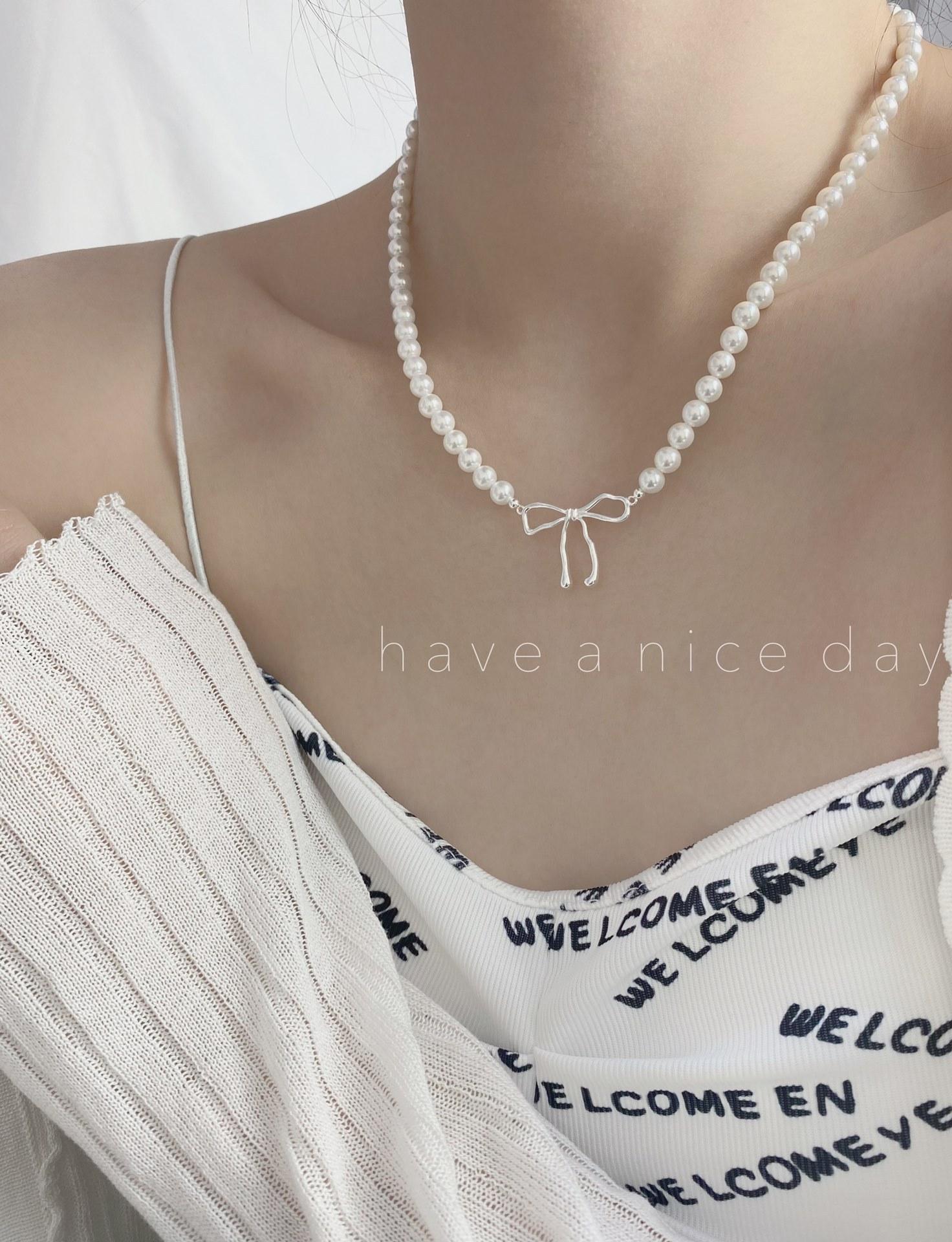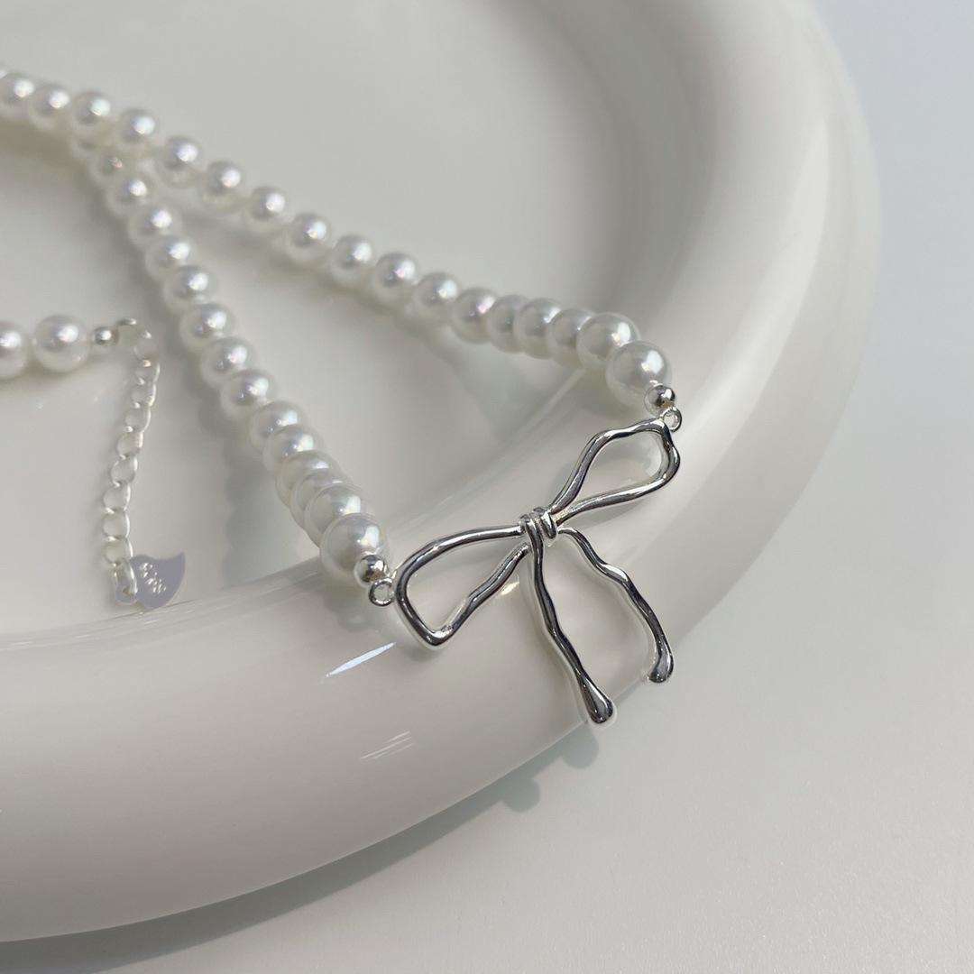 Collar de lazo con cuentas de plata esterlina S925, estilo delicado, collar sencillo para mujer
