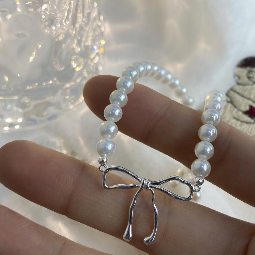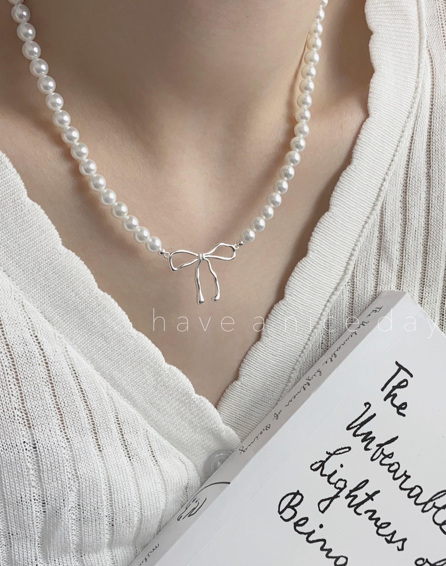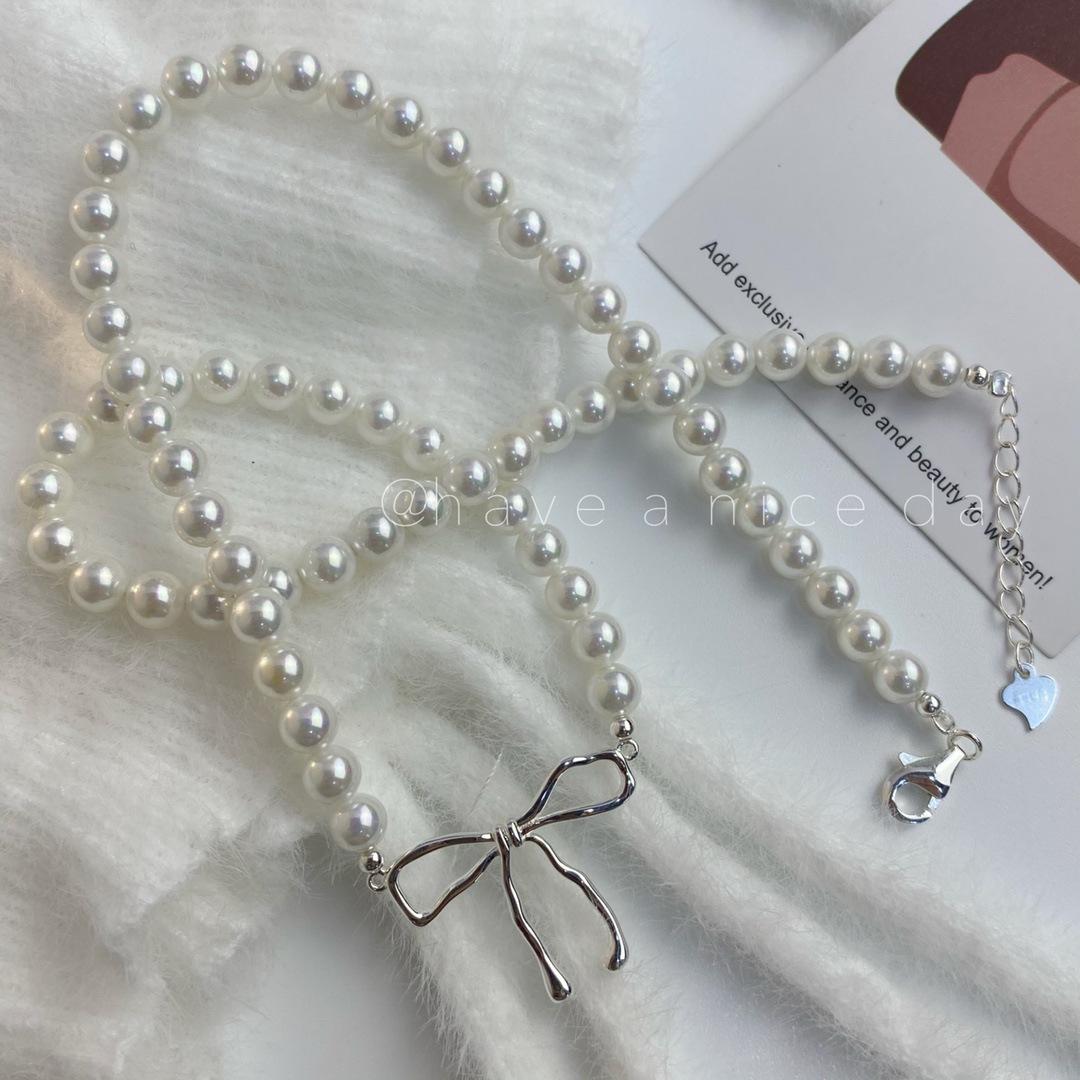 Collar de lazo con cuentas de plata esterlina S925, estilo delicado, collar sencillo para mujer