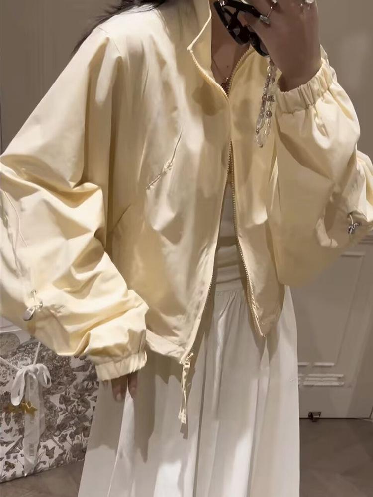 Abrigo fino con cordón ajustable de estilo coreano para mujer, protección solar, novedad de verano de 2024, top informal holgado con cuello con cordón ajustable de estilo coreano