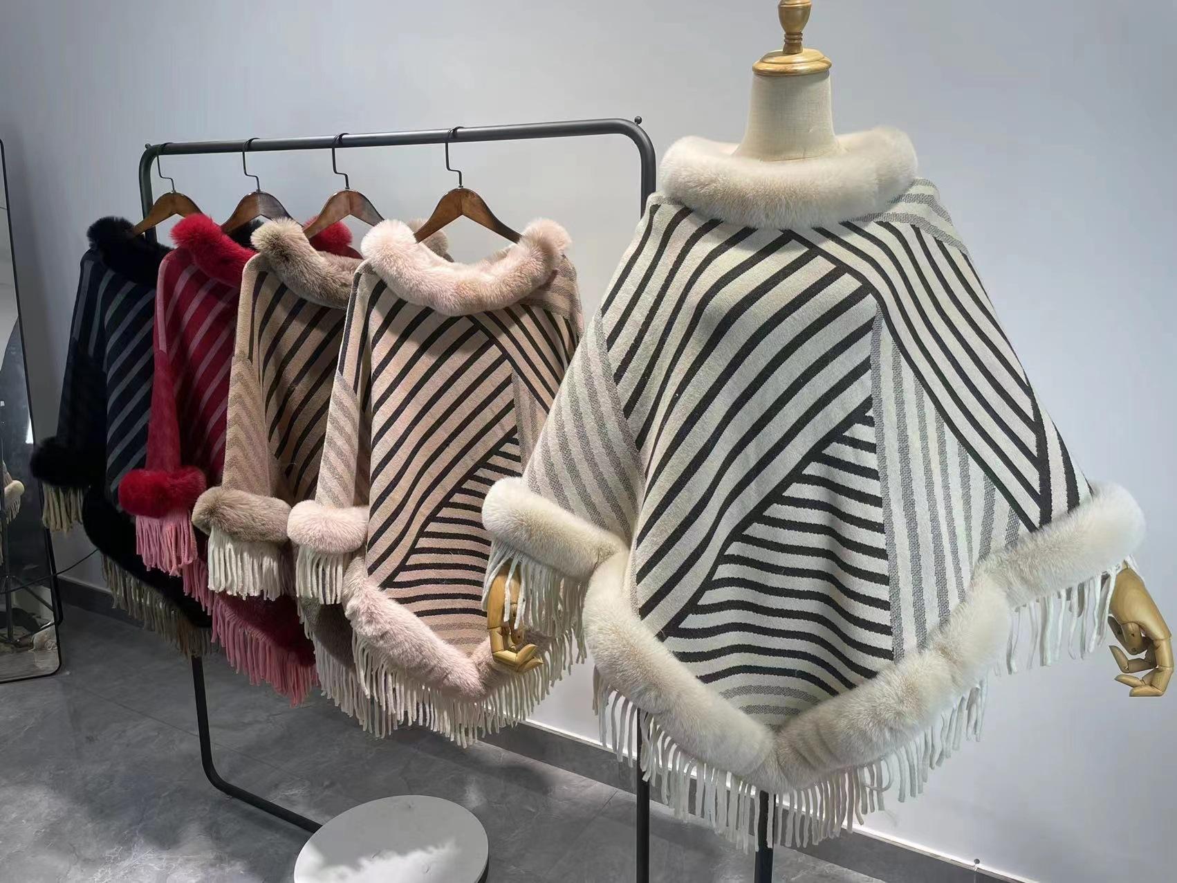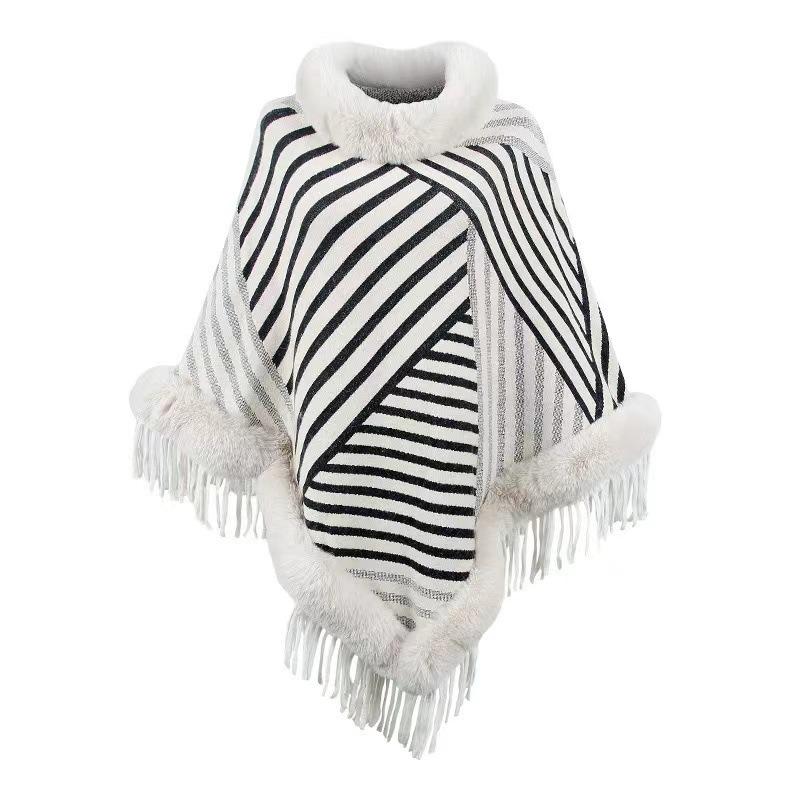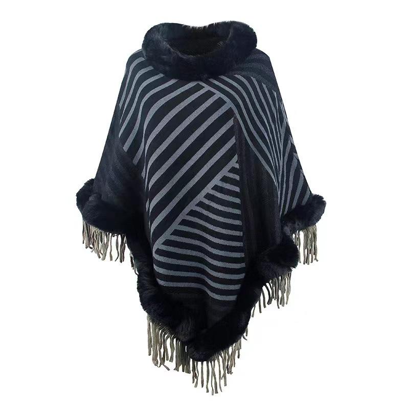 Otoño e invierno nuevo europeo y americano otoño e invierno nuevo jersey de punto de moda de contraste de color borla capa capa capa capa ropa exterior