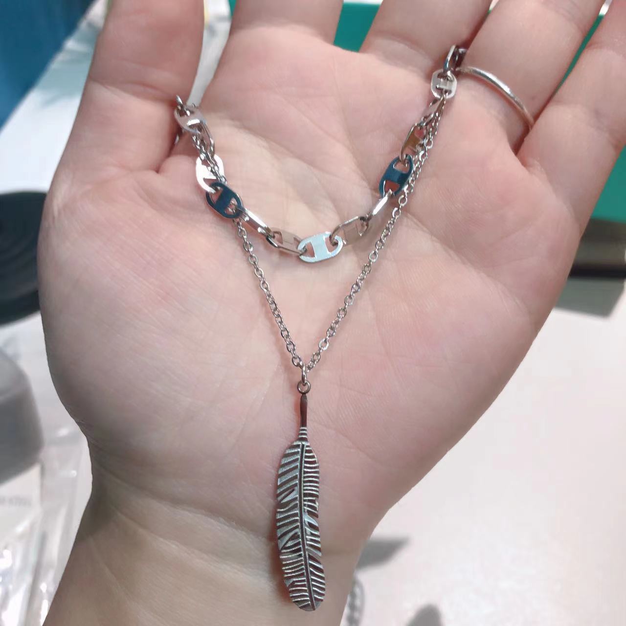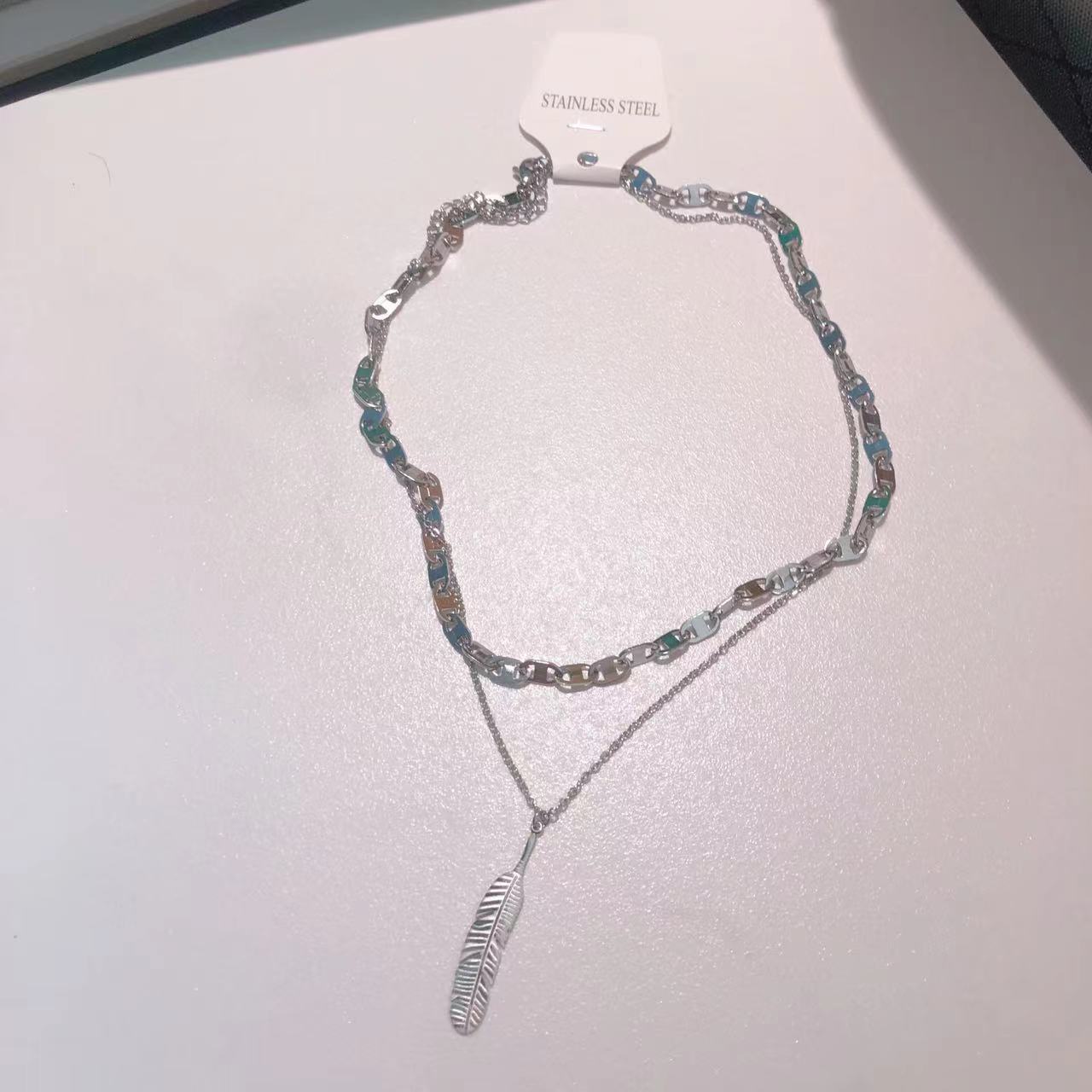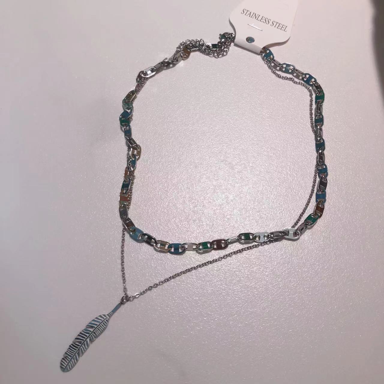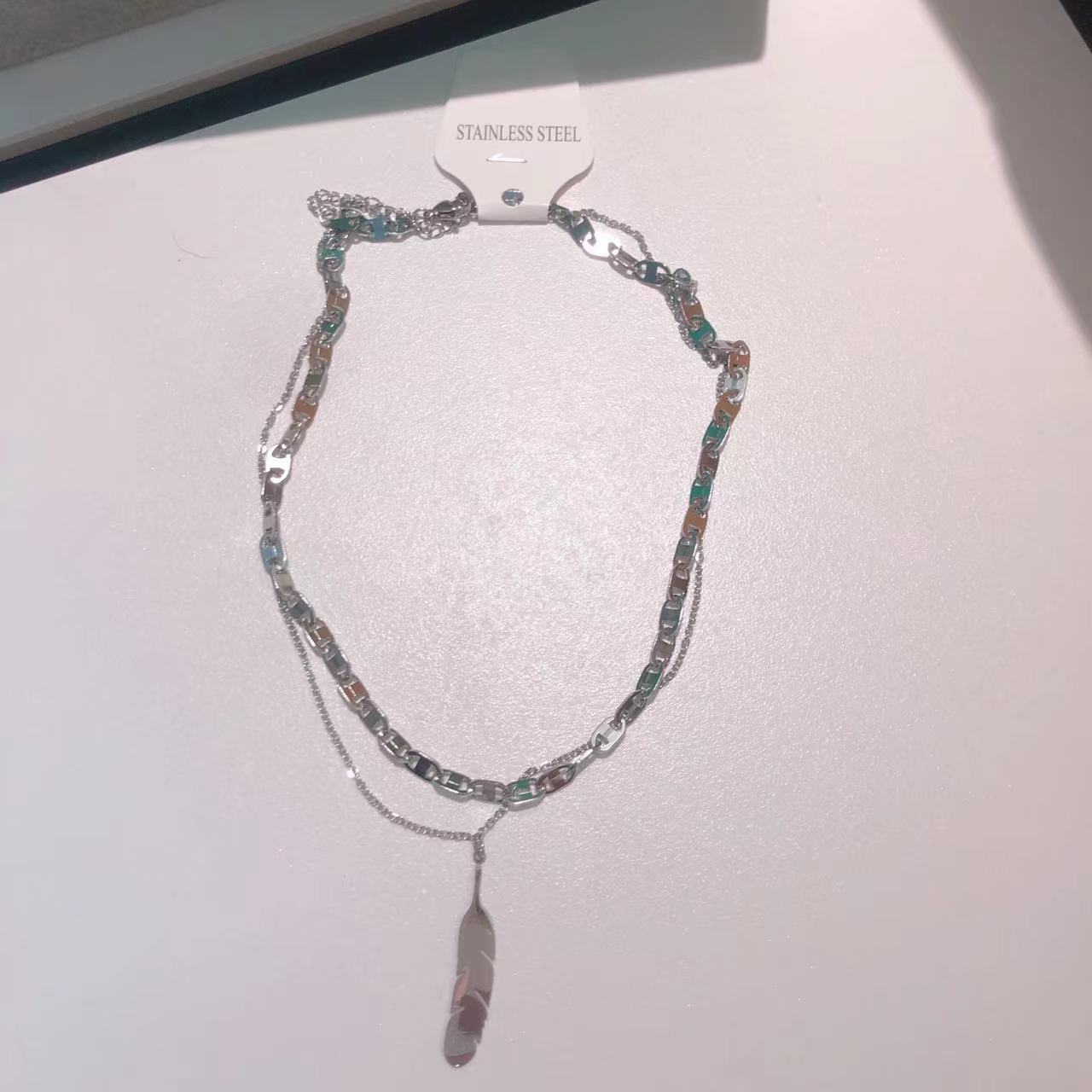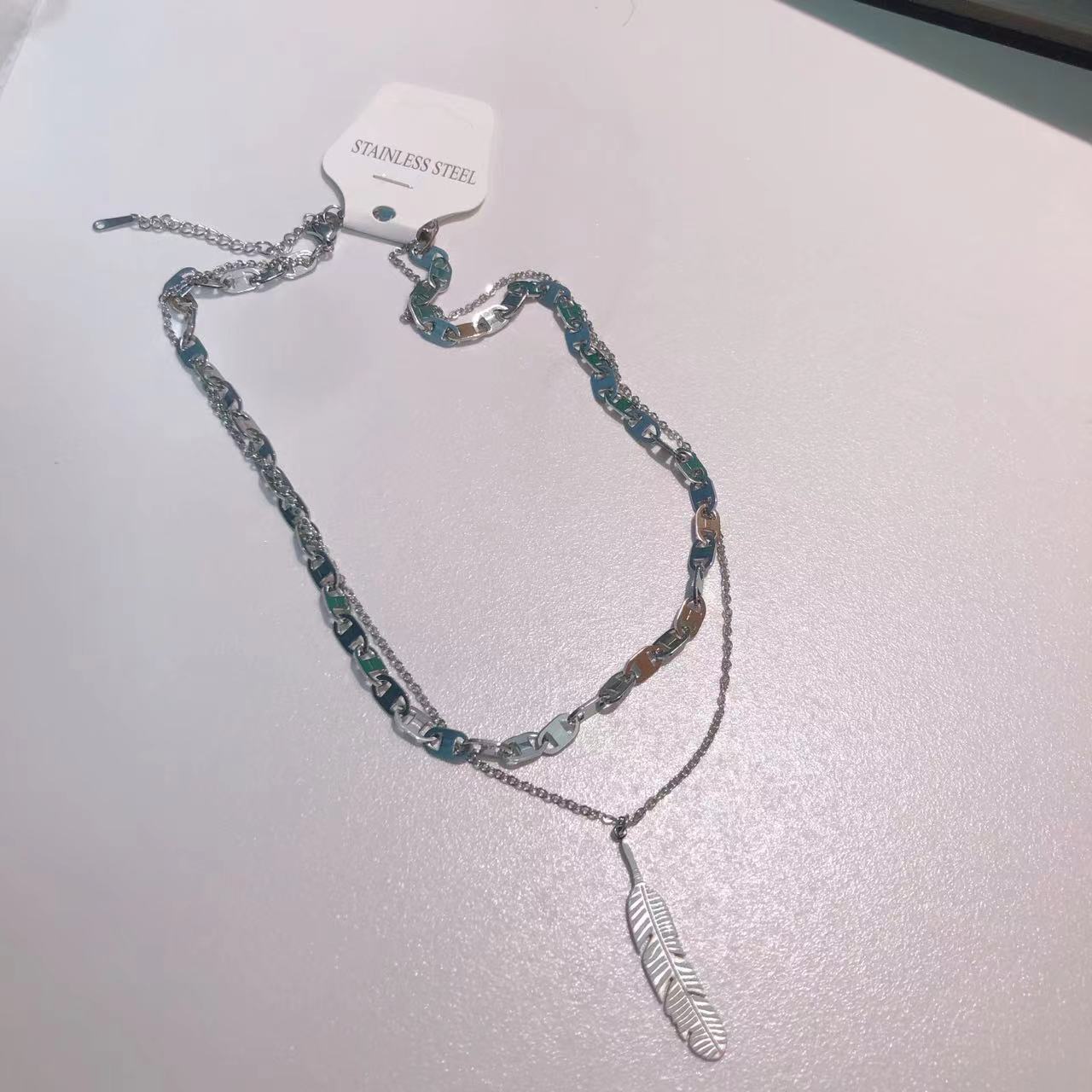 Collar con colgante de hojas de nicho de doble capa, cadena para clavícula de acero de titanio para hombre, simple para mujer, al por mayor