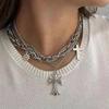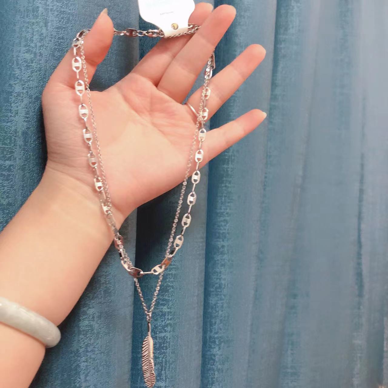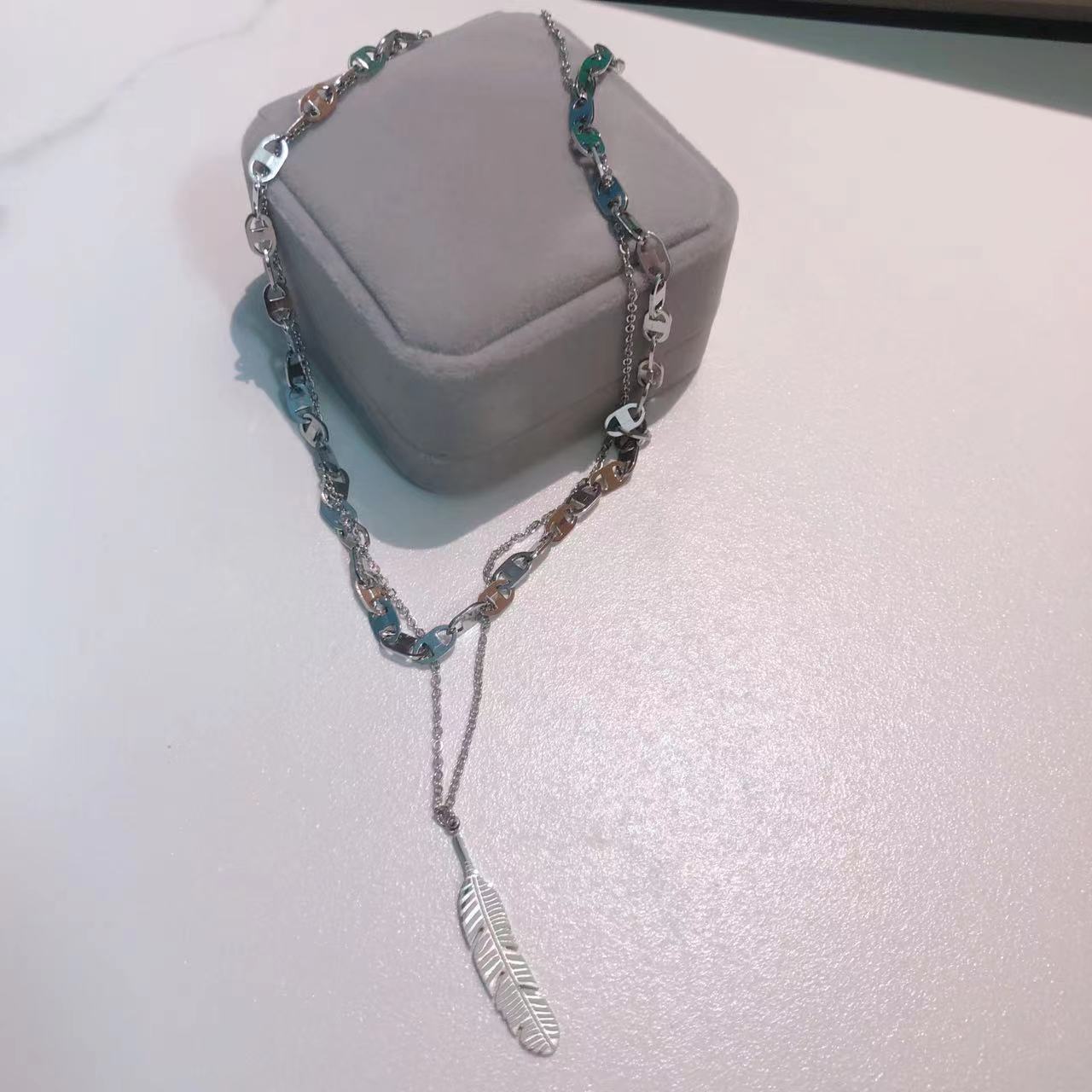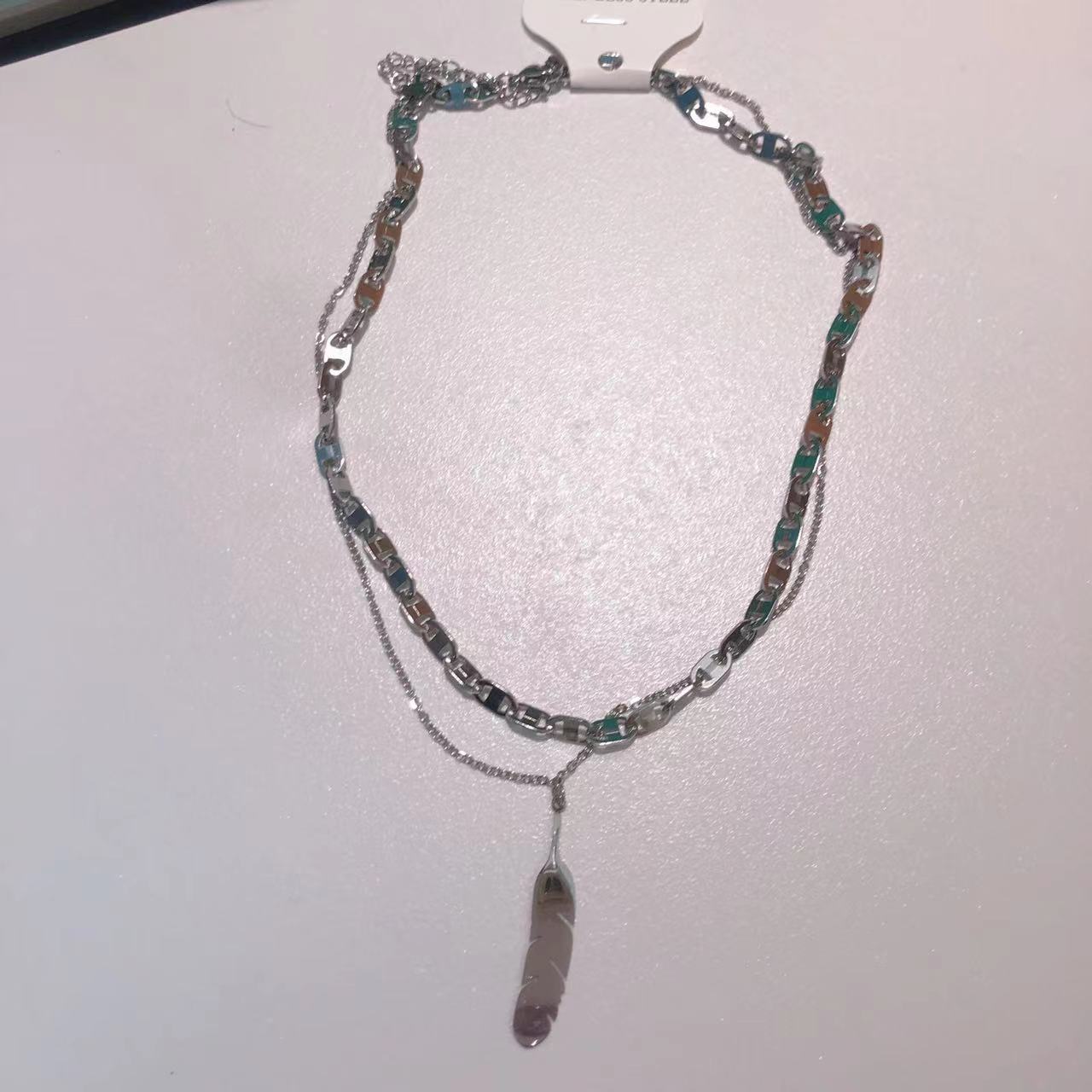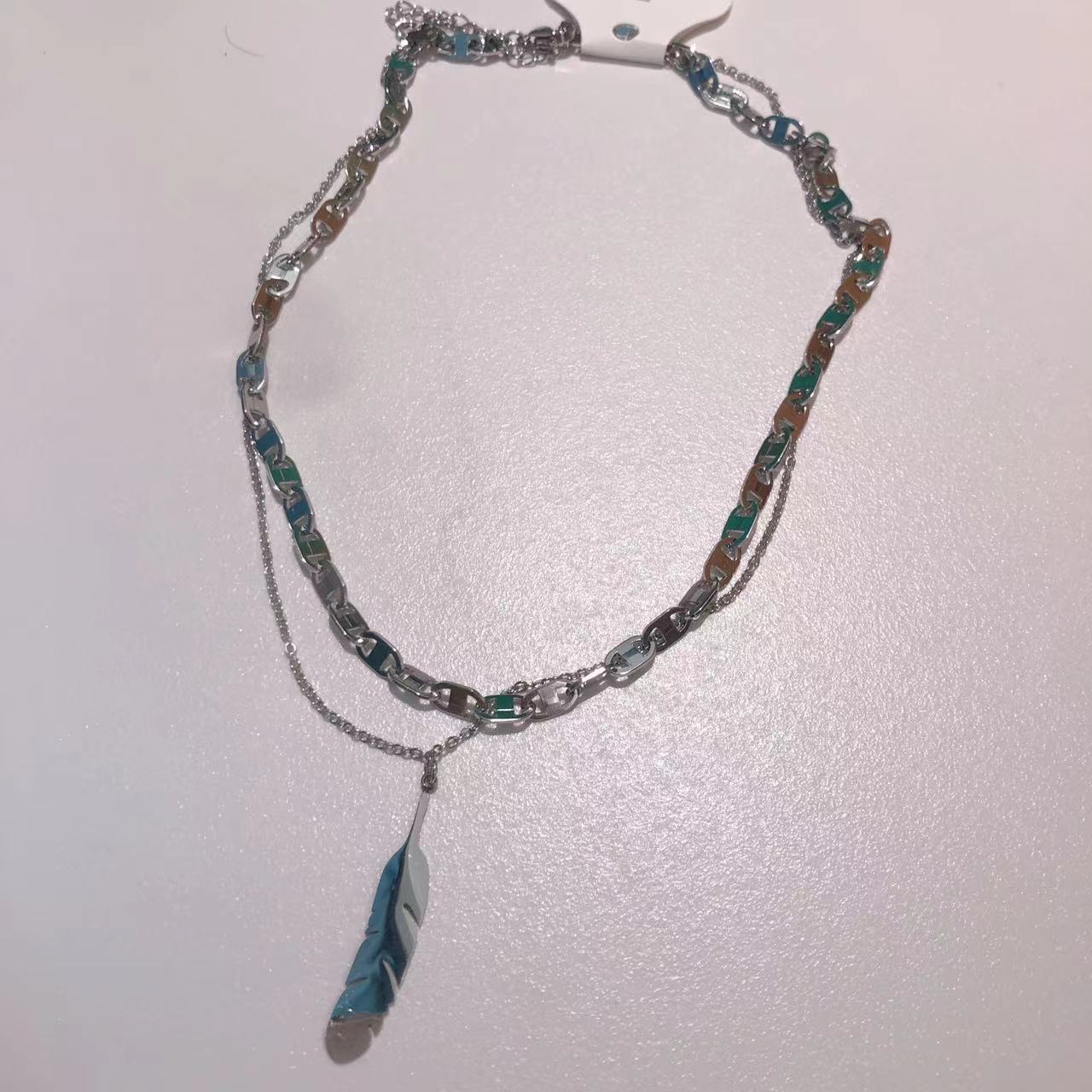 Collar con colgante de hojas de nicho de doble capa, cadena para clavícula de acero de titanio para hombre, simple para mujer, al por mayor