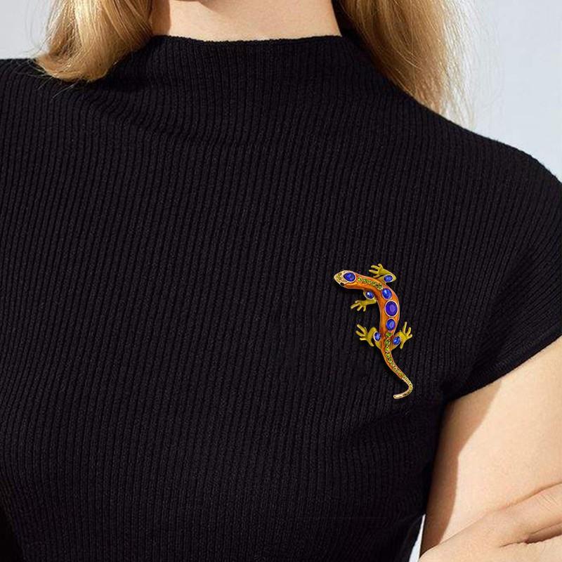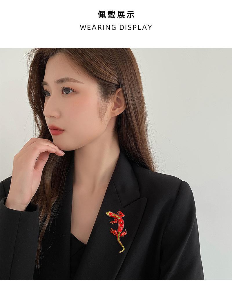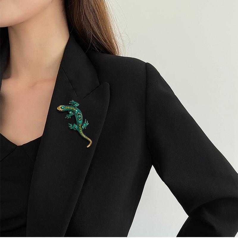 Broche de Geco Retro Europeo y Americano de Moda para Mujer Personalizado Versátil con Incrustaciones de Diamantes Lagarto Serpiente de Cuatro Garras Pin Adorno para Abrigo