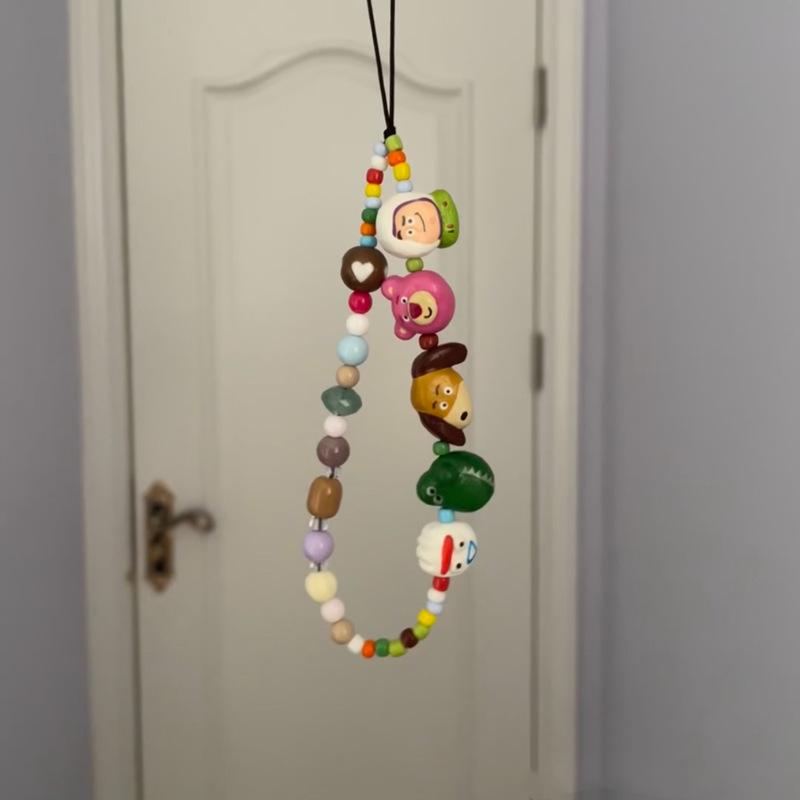 Cadena para teléfono móvil con diseño de animales de dibujos animados, adornos colgantes CCD, cordón con cuentas, llavero de cuerda antipérdida para cámara DIY.