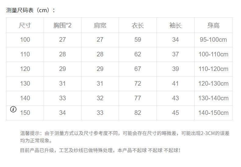 100cm, 110cm, 120cm, 130cm, 140cm, 150cm