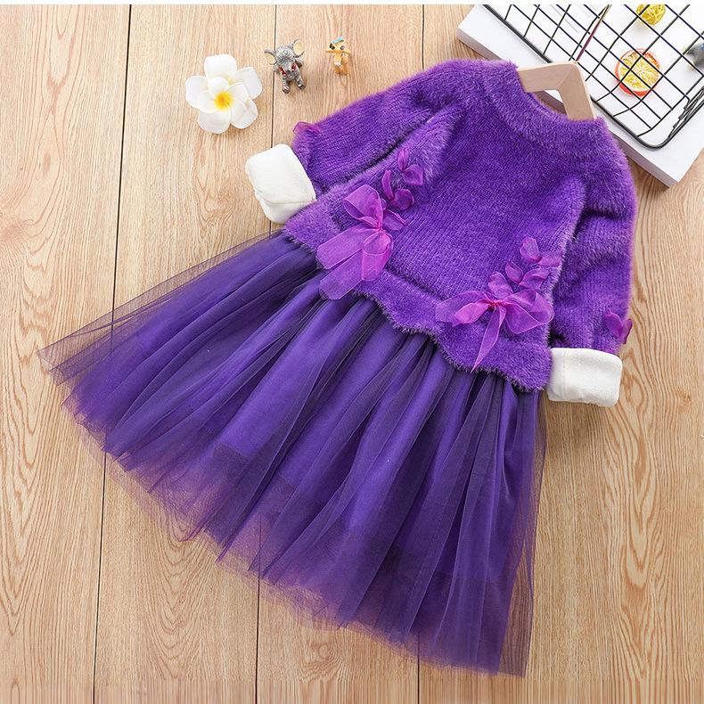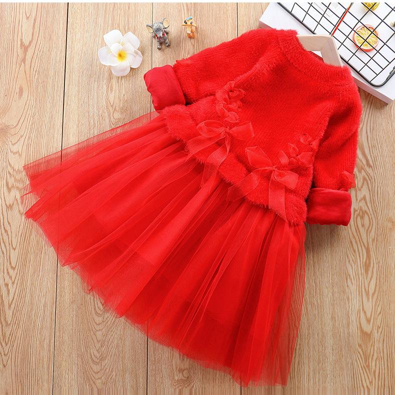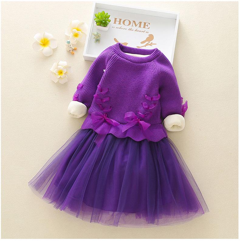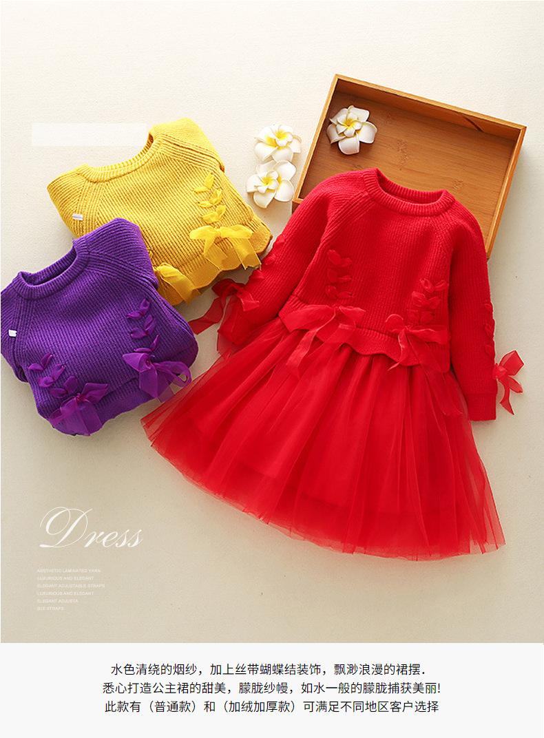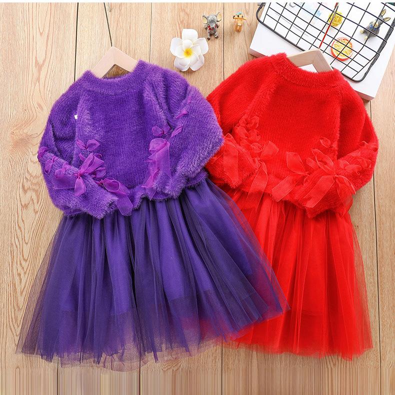 Otoño e Invierno 2024 Ropa para Niños al Mayoreo Vestido Suéter para Niñas Vestido de Princesa con Lazo Vestido para Niños Falda para Bebé