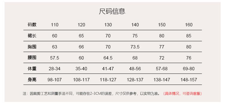 110cm, 120cm, 130cm, 140cm, 150cm, 160cm