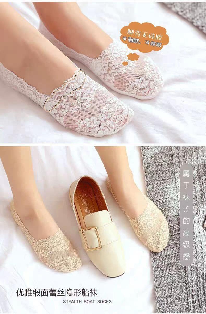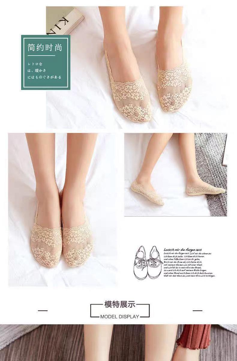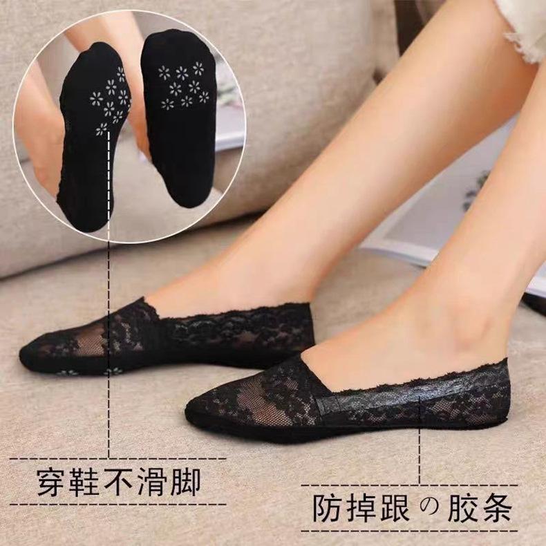 Calcetines de Tacón Alto con Encaje para Mujer, Estilo Coreano, Calcetines Cortos Antideslizantes de Silicona, Boca Baja, Estilo Fino de Verano, Calcetines Invisibles Antideslizantes