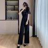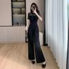 Nuevo Mono Negro Estilo Chino 2025 Nuevo Estilo Dama Mono Traje de Pierna Ancha Verano