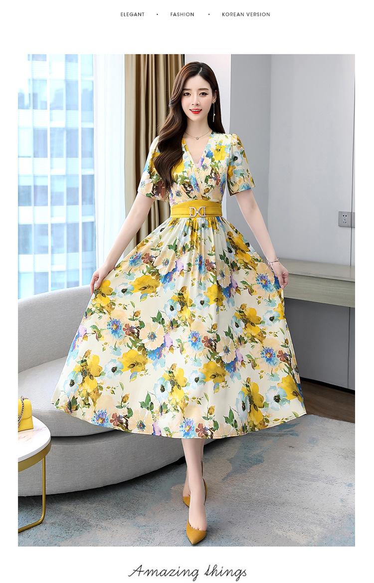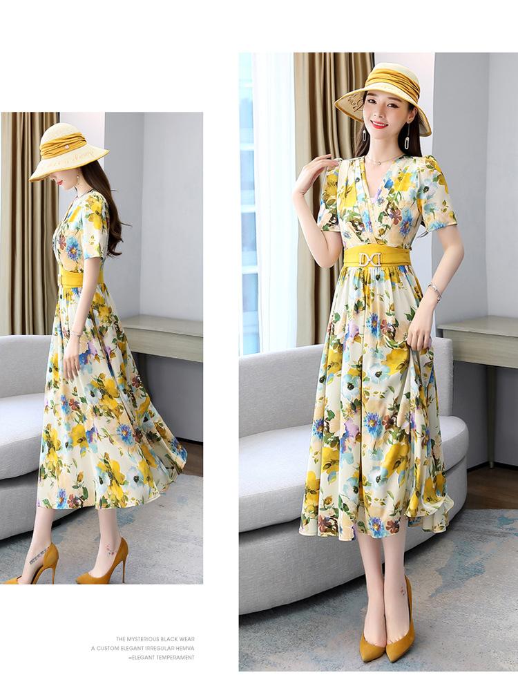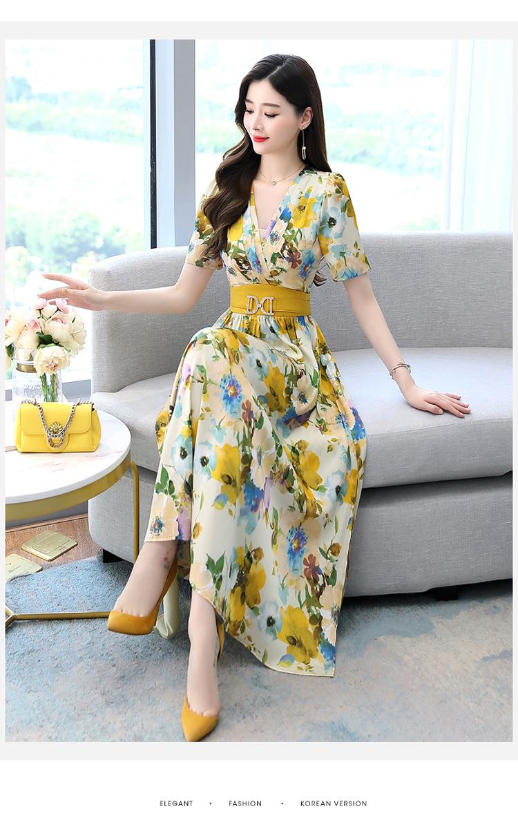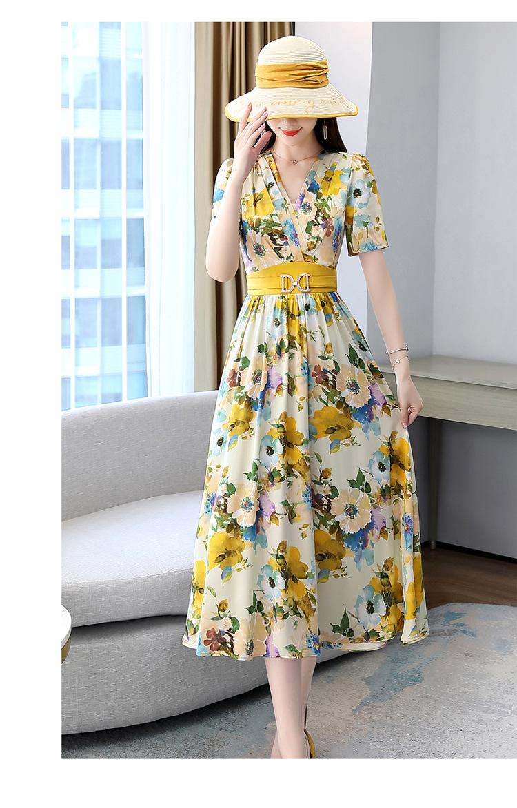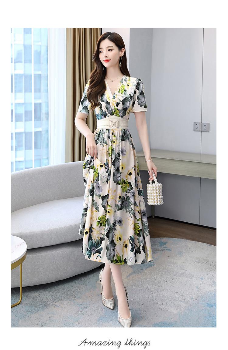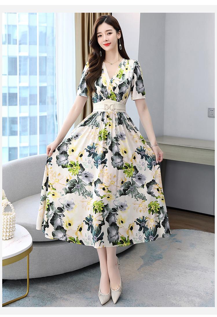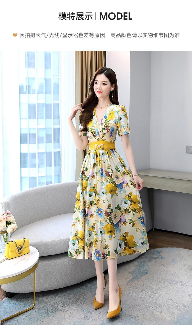 Vestido estampado elegante de alta gama para mujer, ropa de verano 2024, nuevo estilo socialité, ligero, maduro, estilo occidental, vestido largo adelgazante.