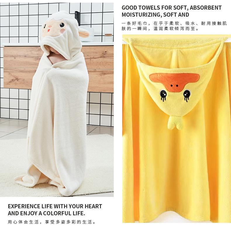 Toalla de baño de forro polar coral universal para niños con capucha y absorbente, suave y con frente de primavera para el cabello