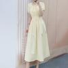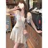 Vestido floral artístico para mujer verano 2024 nuevo estilo francés cuello en V largo manga corta falda algodón fresco y dulce
