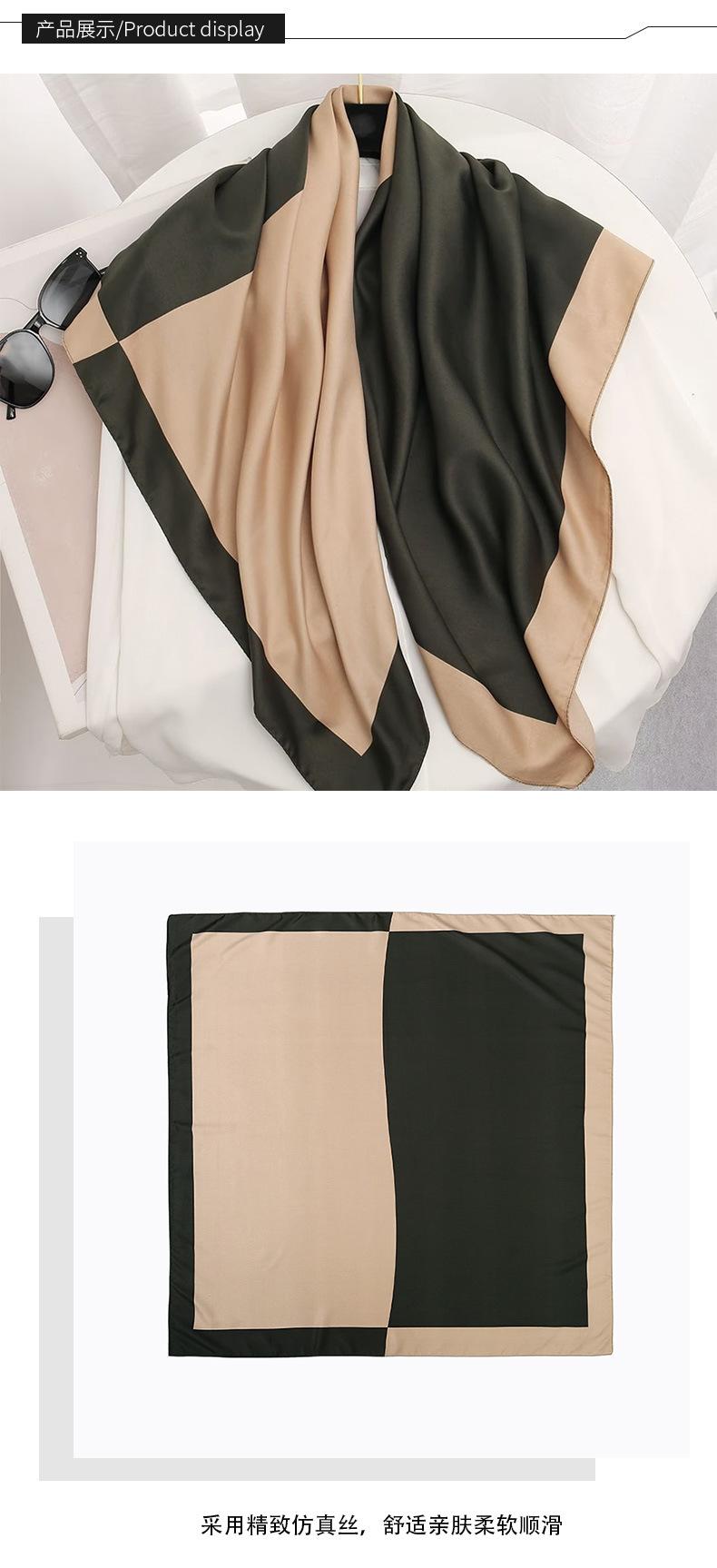 Bufanda decorativa de seda artificial con estampado caqui simple y combinable con protección solar de verano de 2023 para mujer