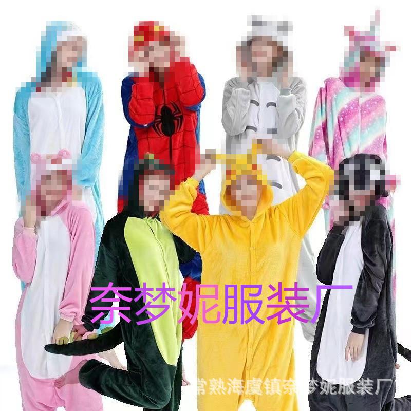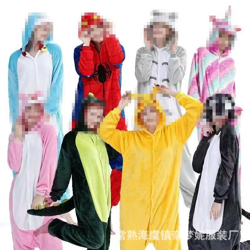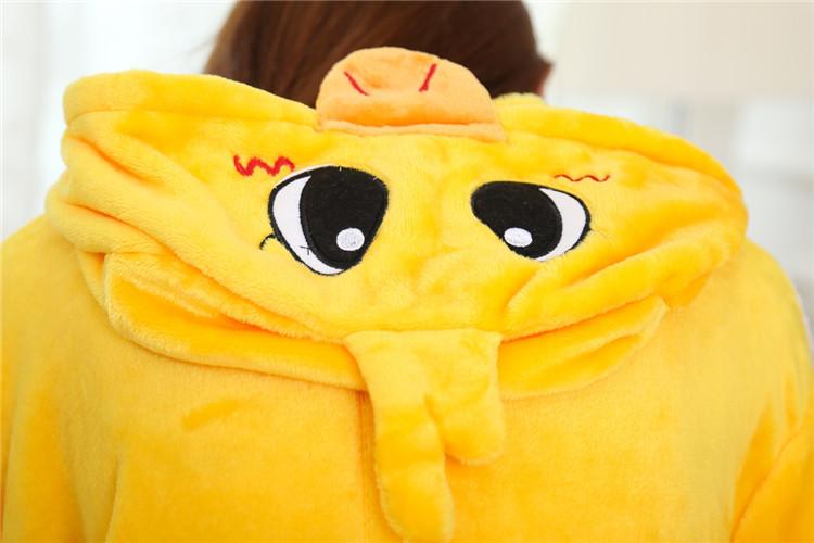 Pijama de Franela de Otoño e Invierno de Dibujos Animados de Una Pieza Pollo Pato Amarillo Animal Hombres y Mujeres Manga Larga Ropa para el Hogar Lote de Fabricante