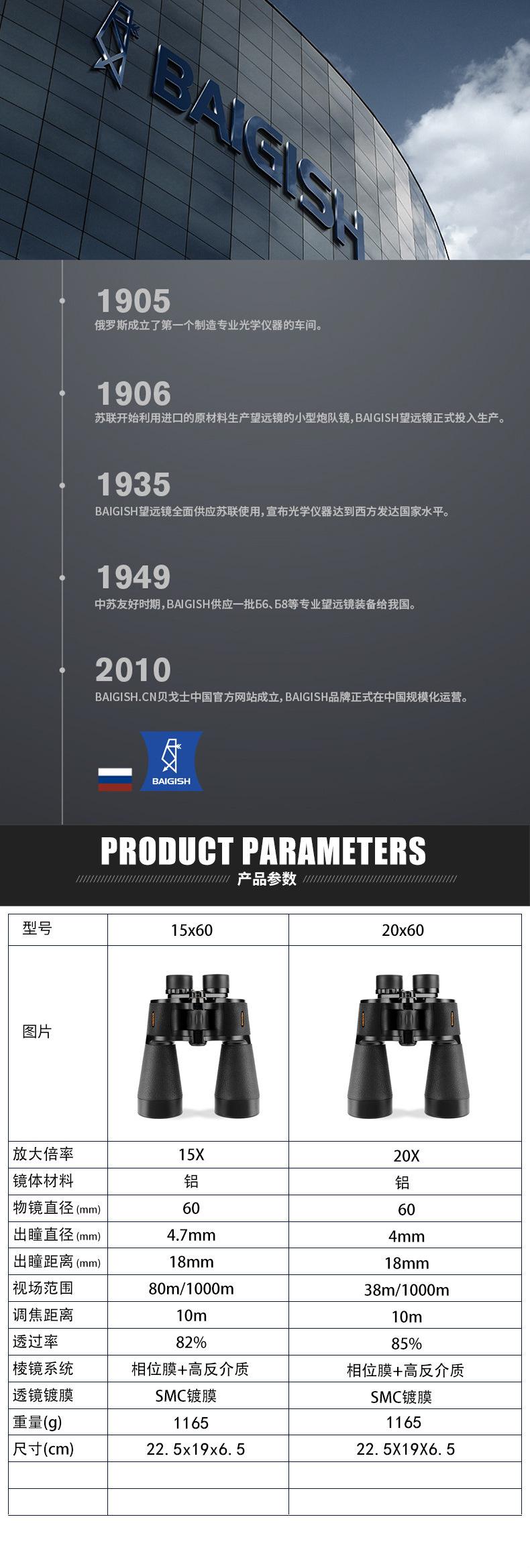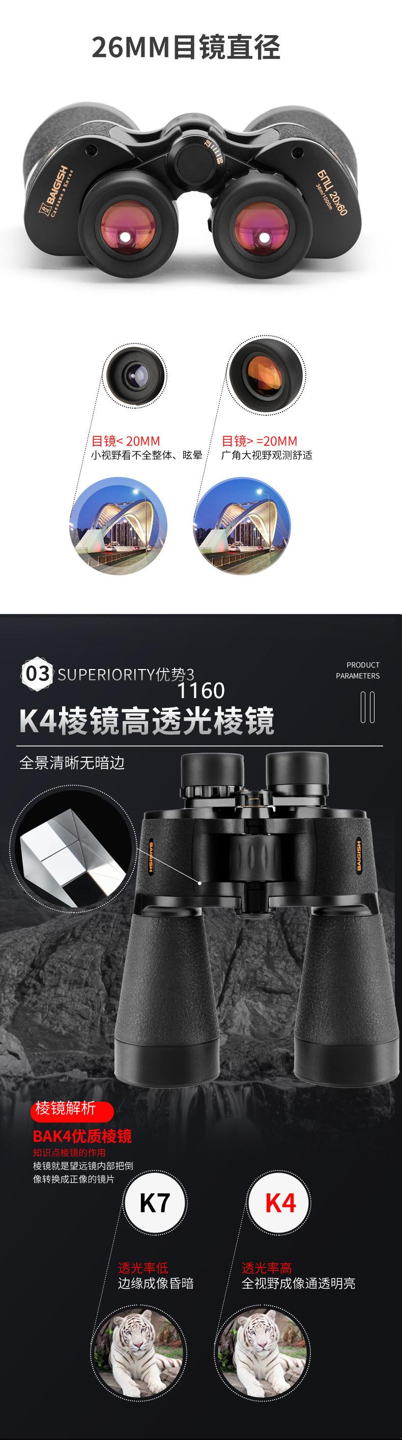 Binoculares Beigoshi Russian Muye ED20X60, gafas de visión nocturna de alta potencia HD, venta al por mayor transfronteriza