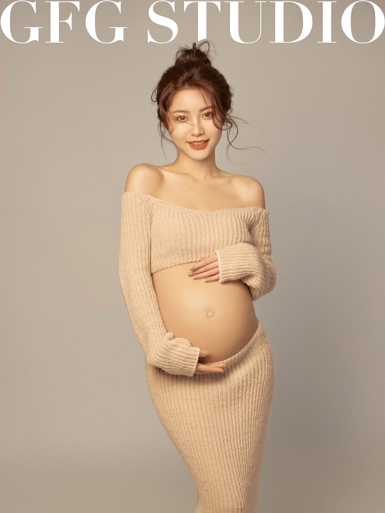 Estudio fotográfico Nueva ropa de maternidad para fotos Foto de barriga grande Traje de punto Fotografía de estilo hogareño sexy Fotografía artística Foto en casa