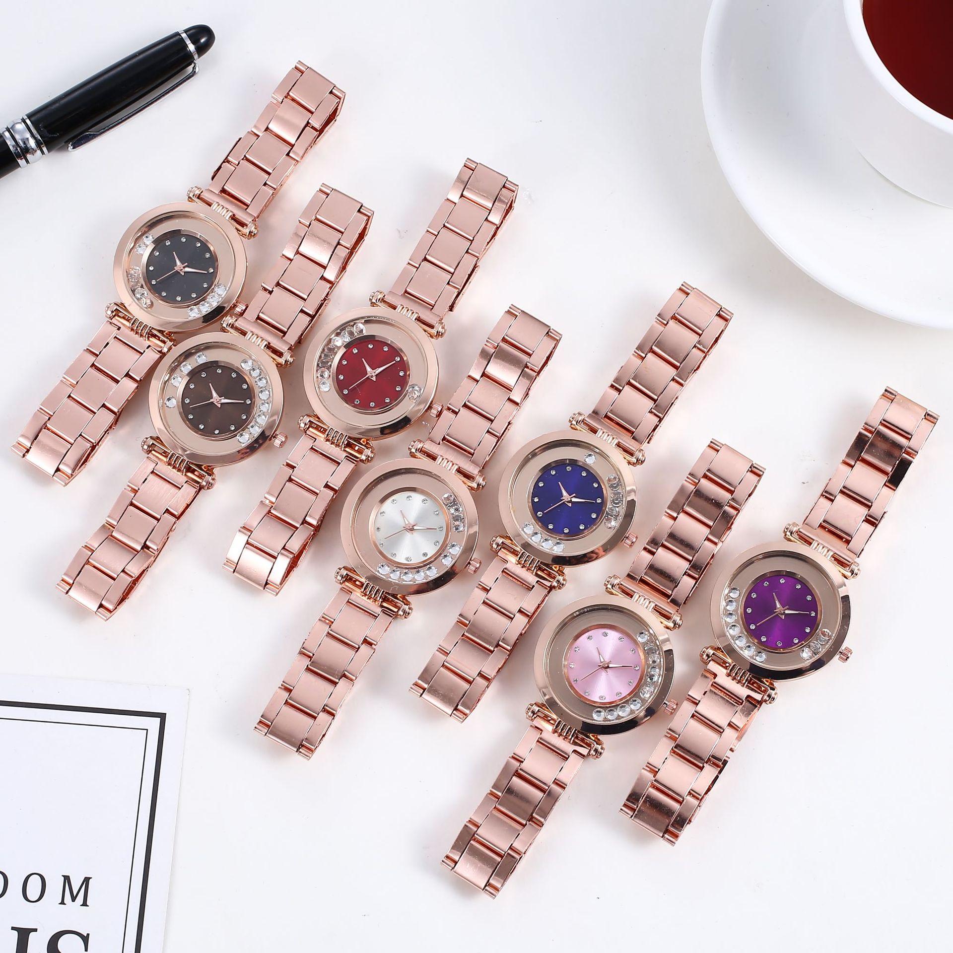 Reloj de Pulsera para Mujer con Correa de Acero Estilo Coreano Oro Rosa con Diamantes Esfera Colorida a la Moda Reloj de Cuarzo Venta Directa de Fábrica Reloj Sencillo con Esfera de Diamantes