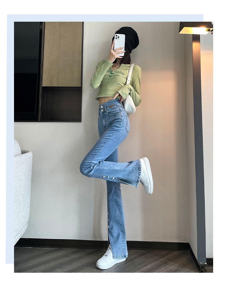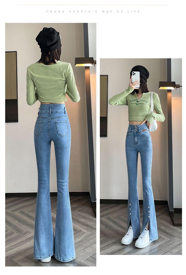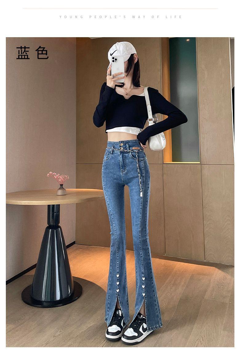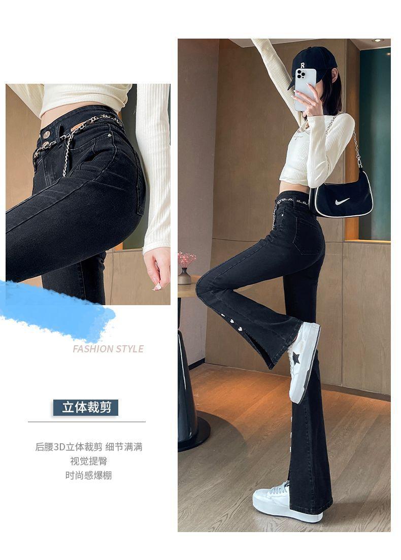 Jeans Bootcut con Abertura para Mujer 2025 Nuevo Slim de Cintura Alta Negro Ajustado Pantalones Acampanados para Mujer Tendencia de Primavera y Otoño
